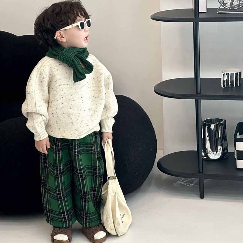 남아용 한국 스타일의 멋진 인스 스타일 스웨터 2025 가을 겨울 아동용 복고풍 체크 무늬 와이드 팬츠 정장스토어 가기