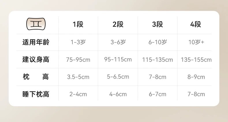 • 어린이용 베개 3개 섹션(6~10세에게 적합)