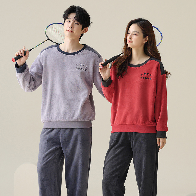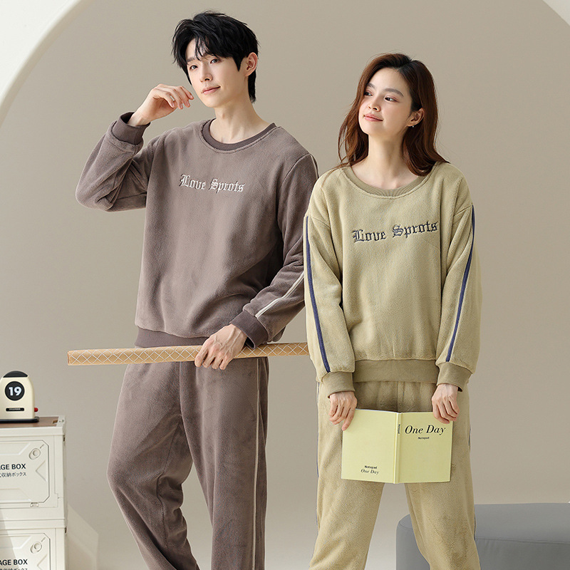 플란넬 커플 잠옷 가을과 겨울 두꺼운 따뜻한 겉옷 청소년 카디건 산호 양털 홈 의류 세트스토어 가기