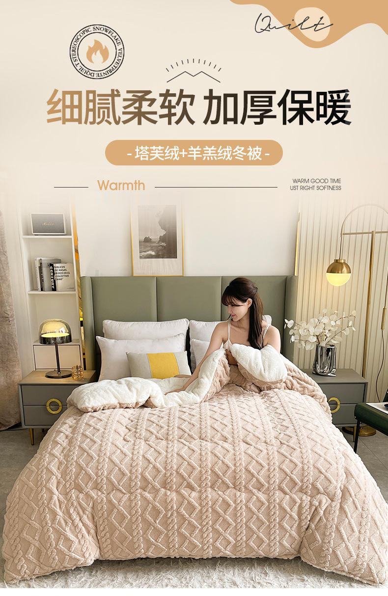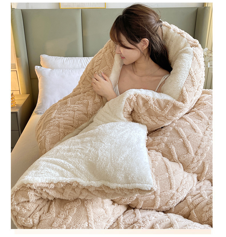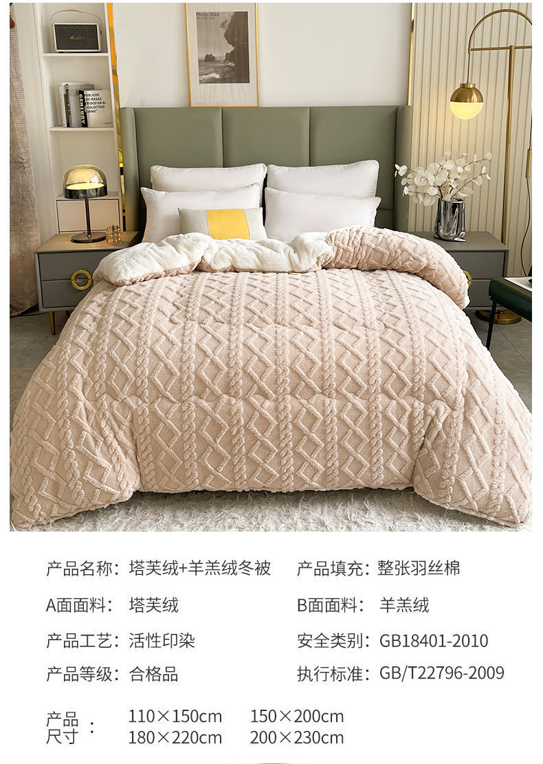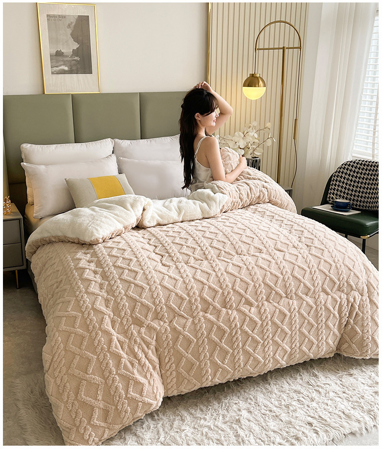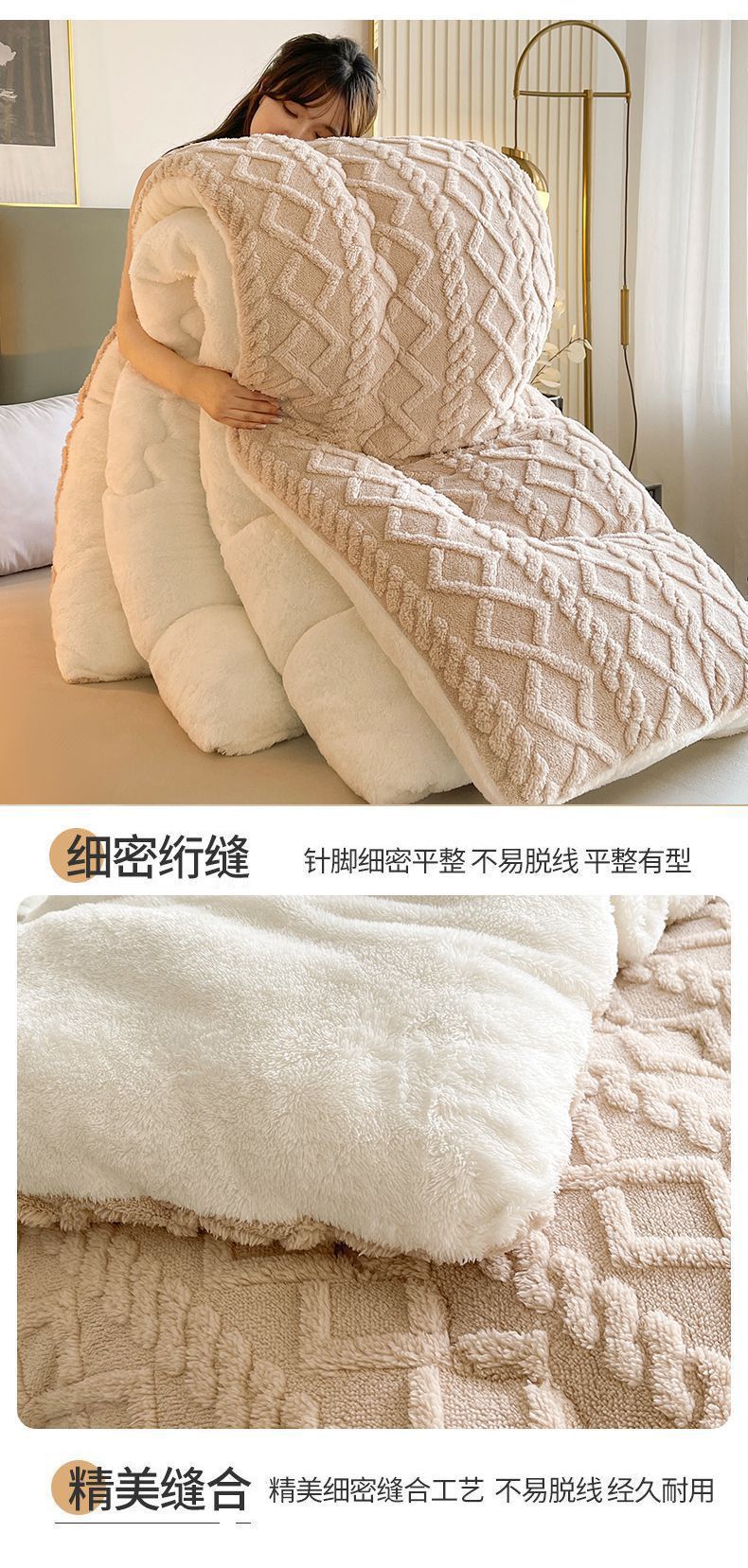 퀼트 이불 겨울 이불 패딩 따뜻한 양고기 벨벳 학생 기숙사 싱글 겨울 2024 새로운 양면 벨벳 도매