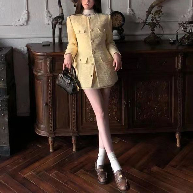 가계의 딸 프렌치 스타일 여성 가을 겨울 작은 향기 스타일 허리 재킷 하이 웨이스트 스커트 투피스 세트스토어 가기