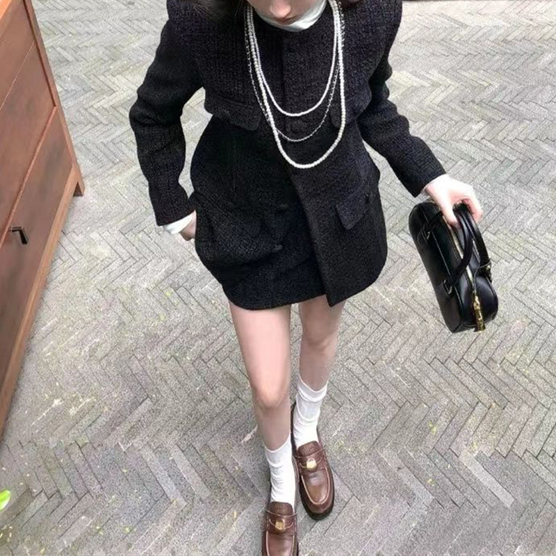 가계의 딸 프렌치 스타일 여성 가을 겨울 작은 향기 스타일 허리 재킷 하이 웨이스트 스커트 투피스 세트