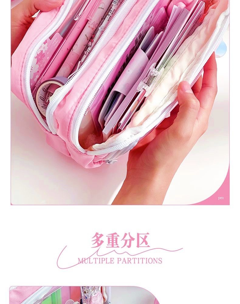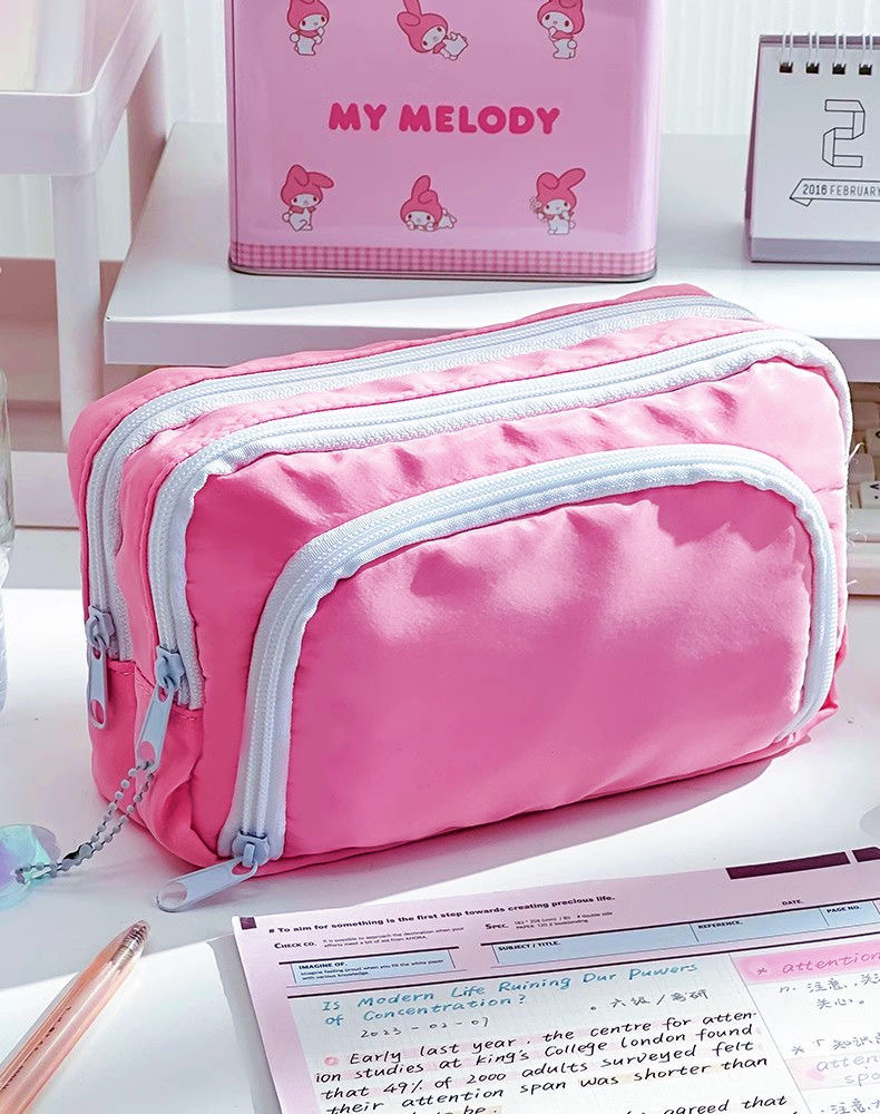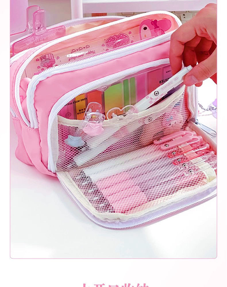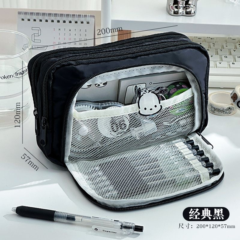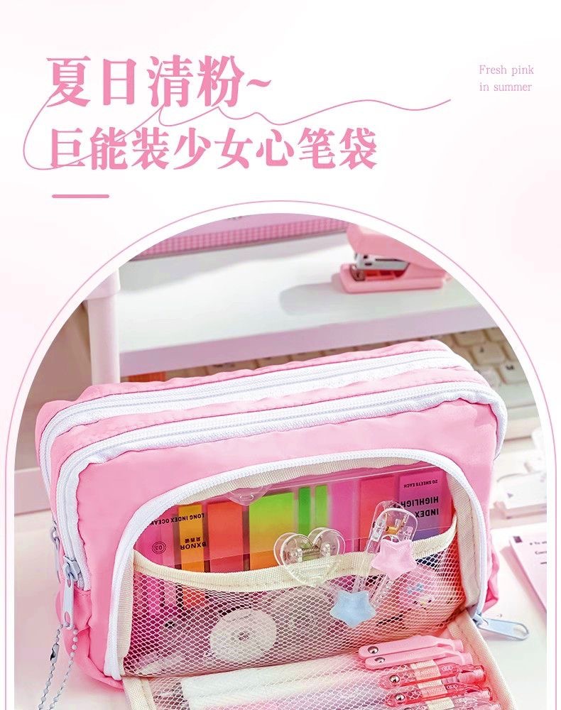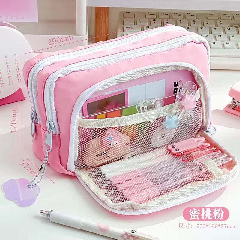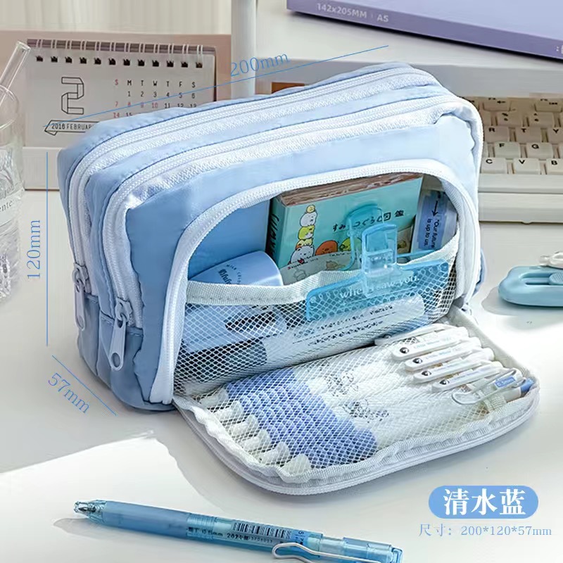 전면 창 연필 케이스 새로운 간단한 다층 소녀 솔리드 컬러 Ins 초등 및 중등 학교 학생을위한 대용량 문구 상자 저장 가방