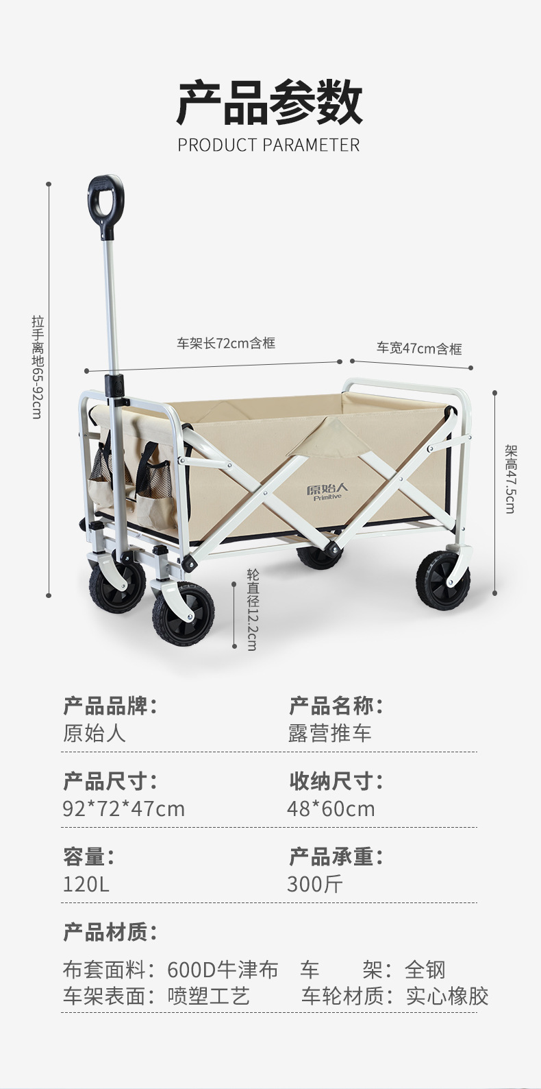 원시 남자 캠핑 카트 야외 캠프 캠핑 핸드 푸시 접이식 피크닉 자동차 작은 트레일러 풀스토어 가기