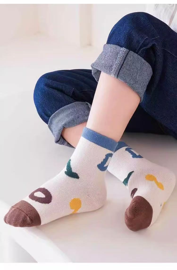 어린이 양말 유아 봄 가을 남아 여아 면 양말 인스 트렌드 양말 만화 그물 어린이 중간 길이 양말
