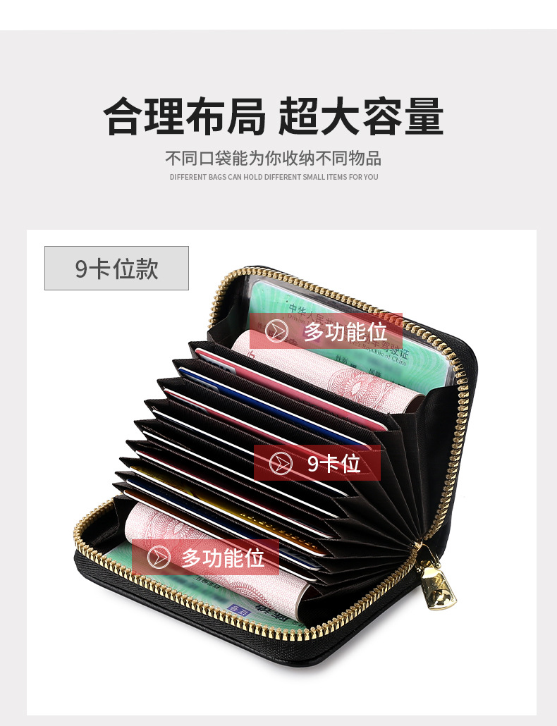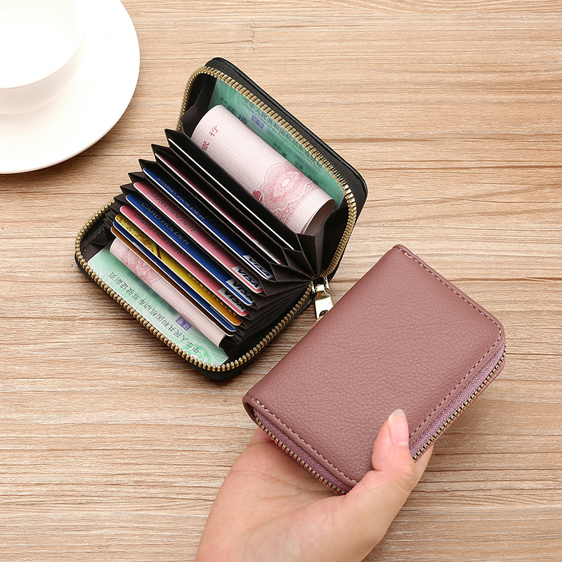 남성과 여성을위한 안티-degaussing 카드 홀더 지퍼 멀티 카드 카드 카드 홀더 대용량 소형 운전 면허증 카드 홀더 지갑