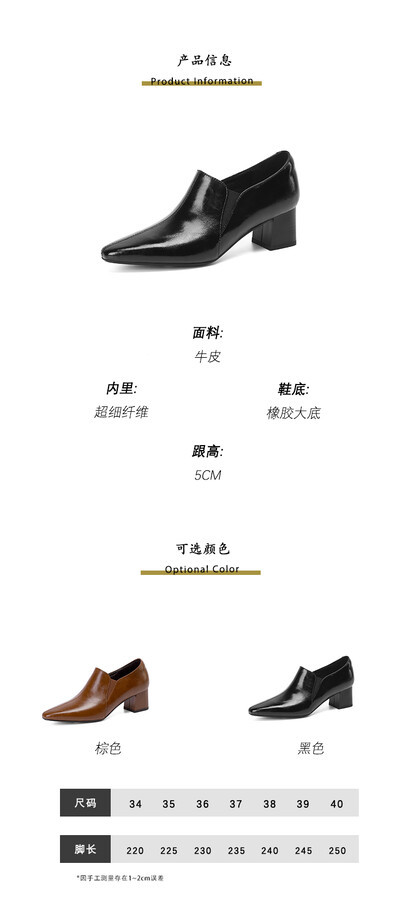 봄과 가을 새로운 깊은 입 중간 발 뒤꿈치 통근 신발 가죽 사각 발가락 두꺼운 발 뒤꿈치 여성용 작은 가죽 신발 편안한 올 매치 작업 신발스토어 가기