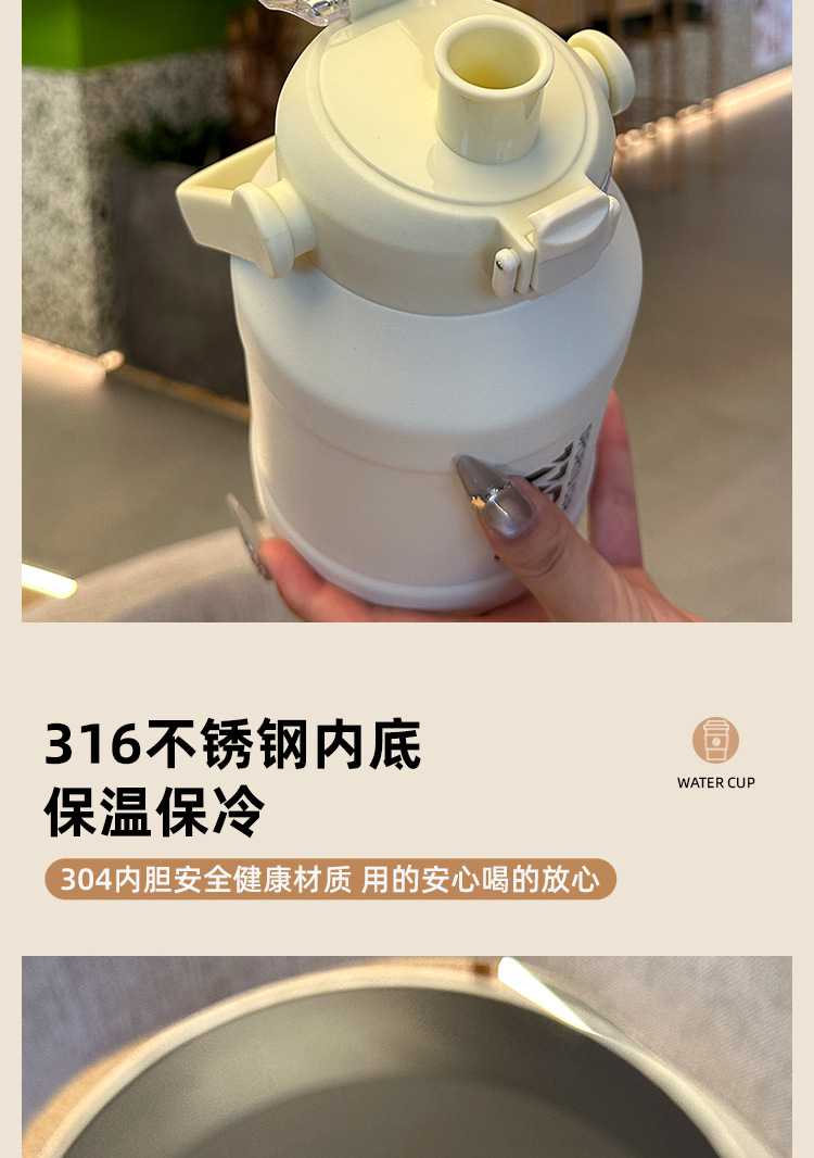 316 스테인레스 스틸 진공 보온병 컵 냄비 휴대용 야외 밀짚 스포츠 주전자 높은 색상 가치 대용량 톤 버킷스토어 가기
