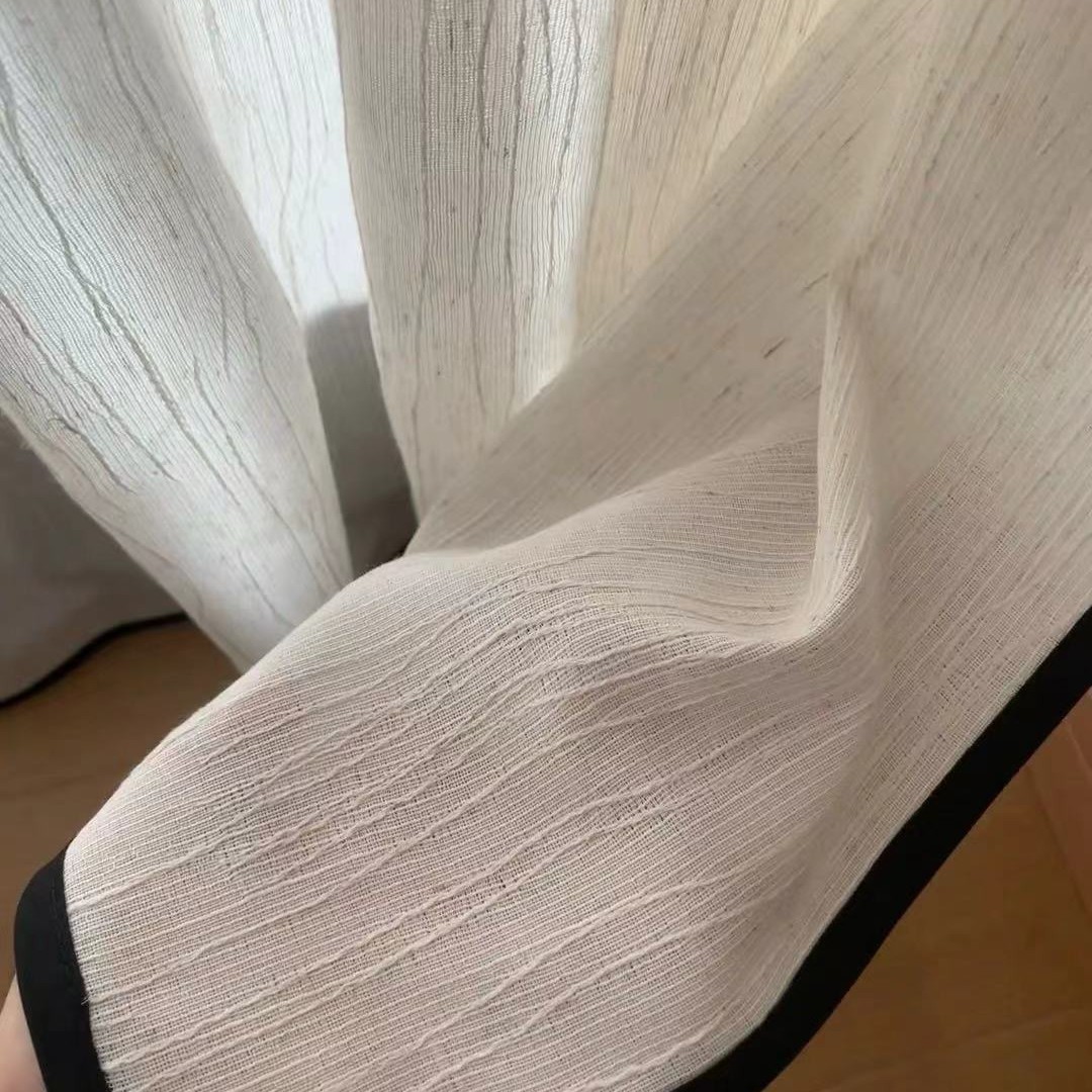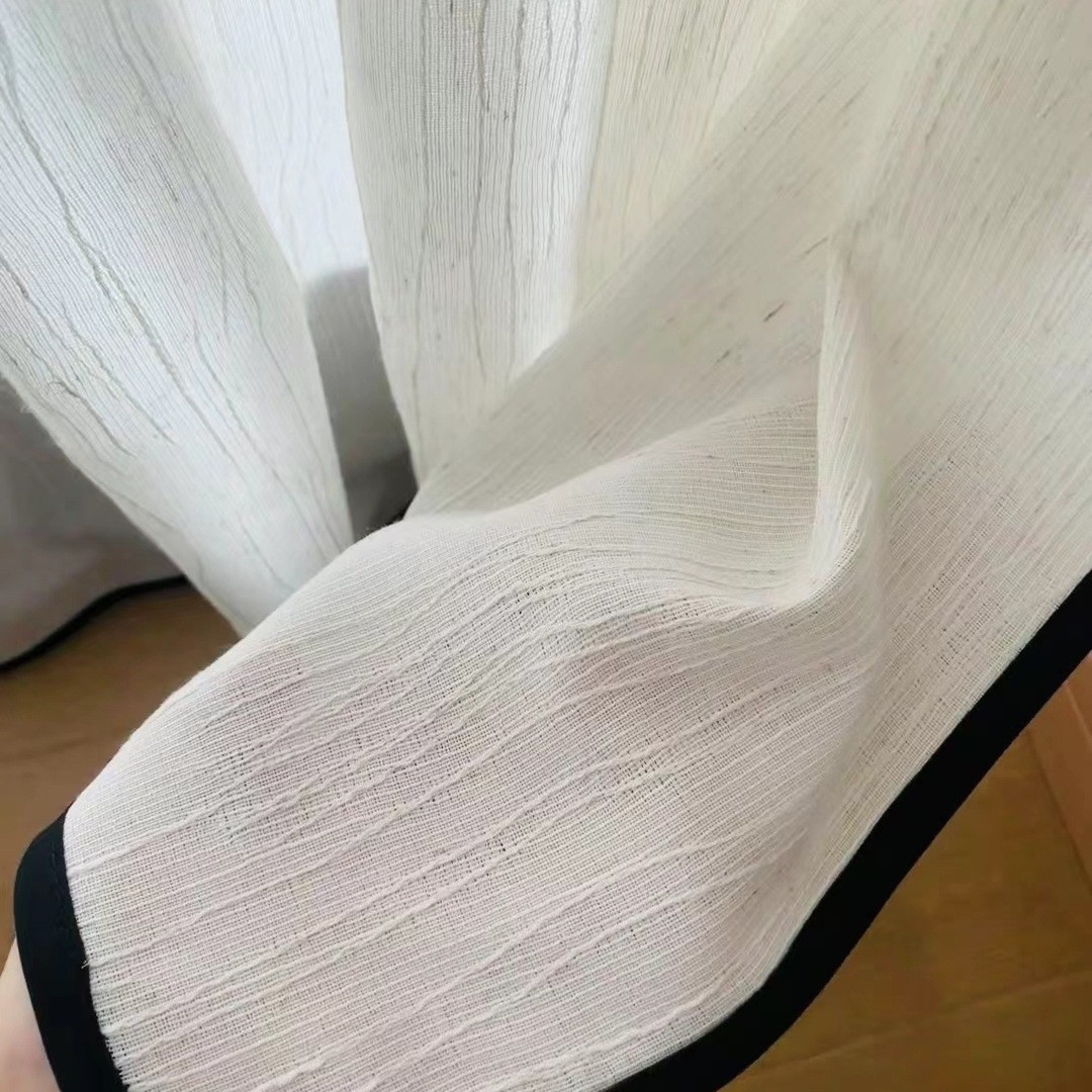 작은 빨간색 서예 스타일의 가벼운 고급 푸펑 거즈, 빛을 투과하지 않고 거실 발코니 침실 린넨 검은색 가장자리 중세 스타일 창 스크린