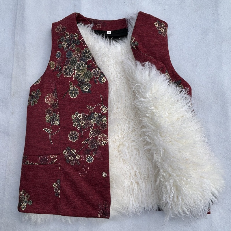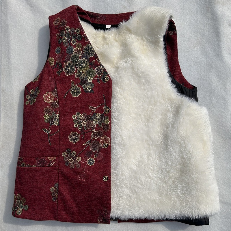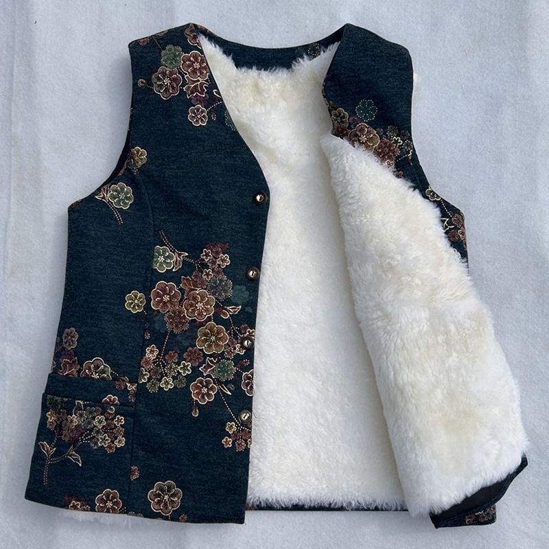 가을과 겨울 모피 원피스 울 조끼 여성 중년 및 노인 따뜻한 양가죽 허리 코트 기모 어머니를위한 두꺼운 조끼스토어 가기