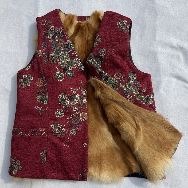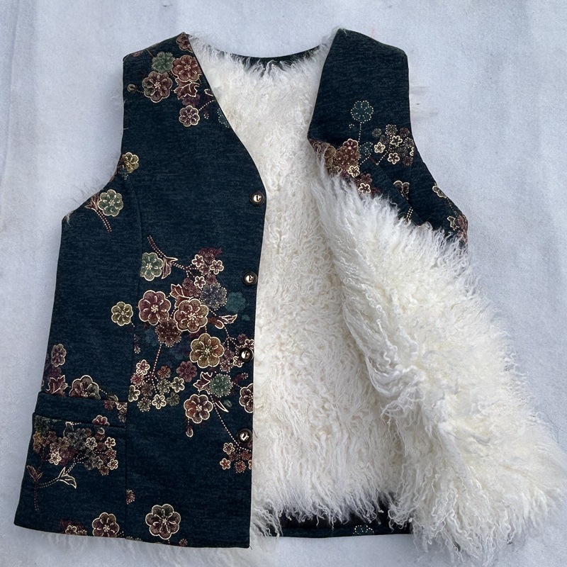 가을과 겨울 모피 원피스 울 조끼 여성 중년 및 노인 따뜻한 양가죽 허리 코트 기모 어머니를위한 두꺼운 조끼