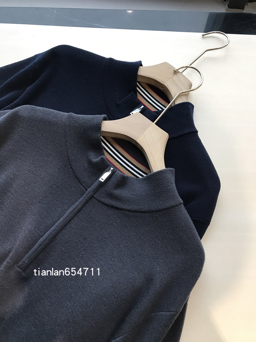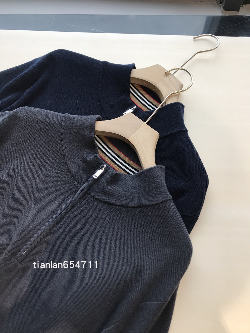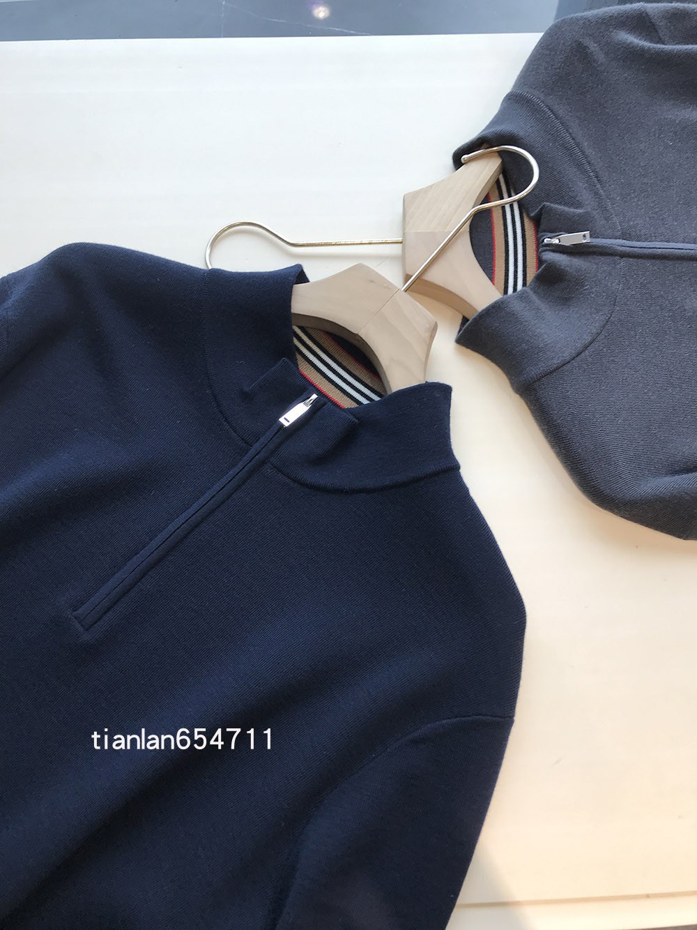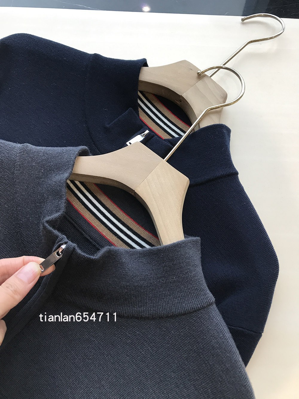 定织的领口和袖口下摆螺纹,密度和质感是一眼的高阶