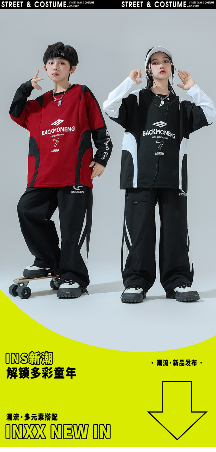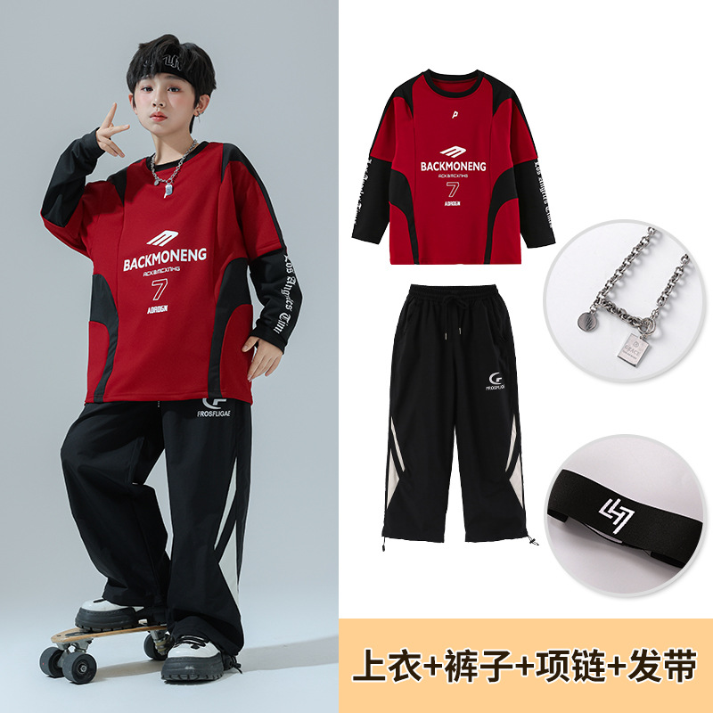 힙합 어린이 패션 의류 힙합 공연 의류 소년 힙합 프라이드 스트리트 세트 가을 초등학교 게임 의류스토어 가기