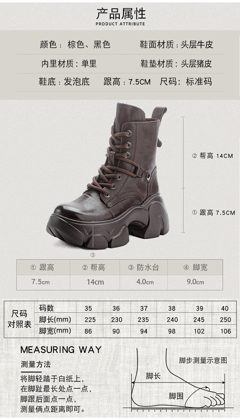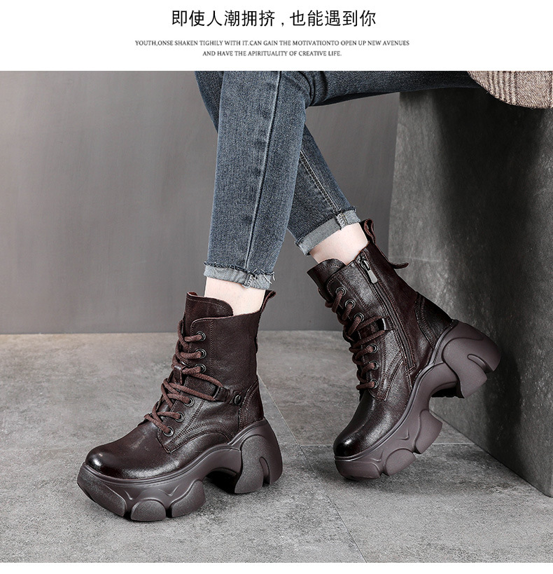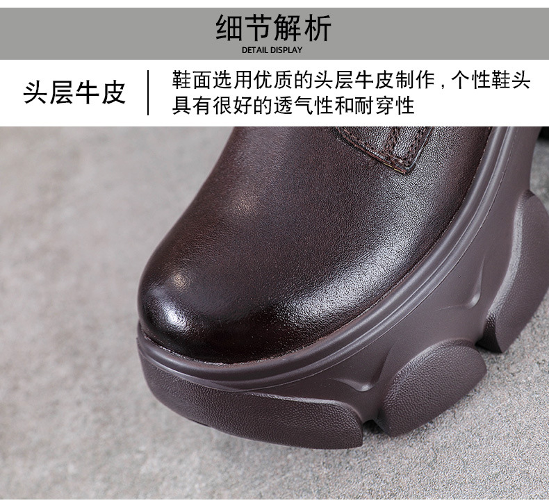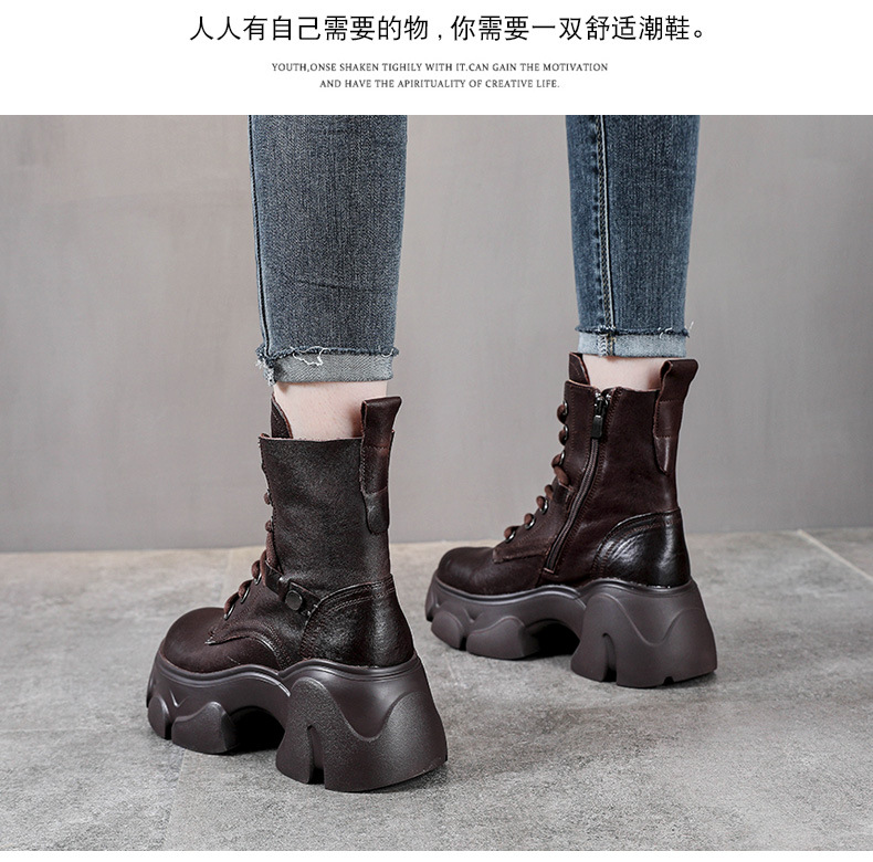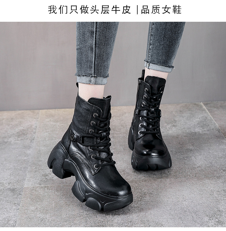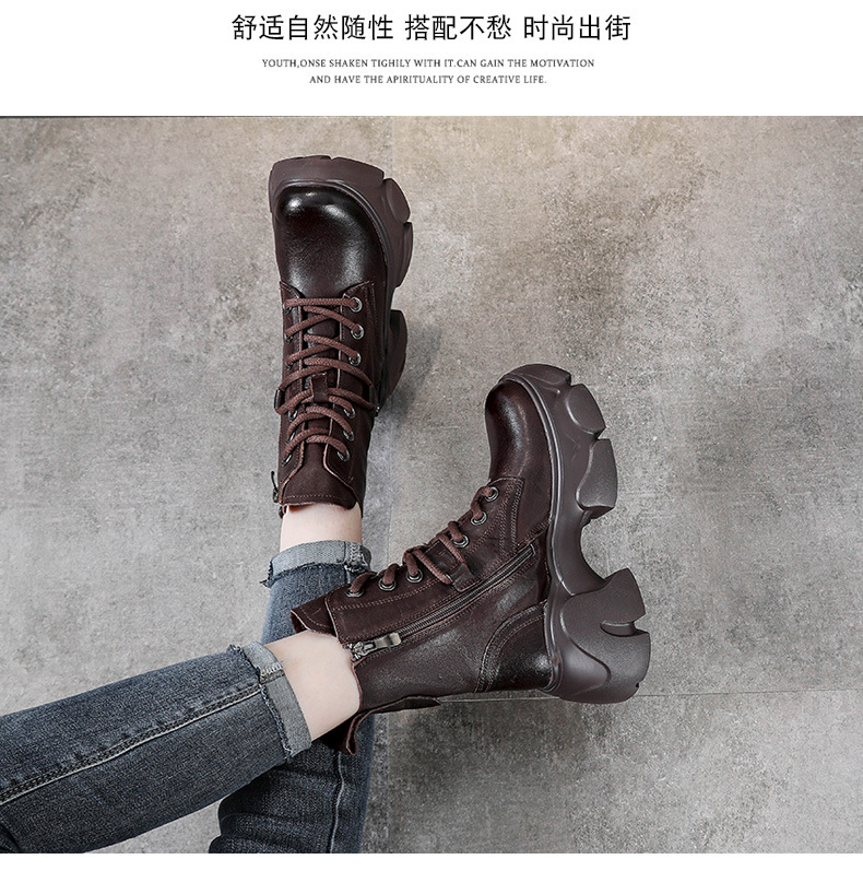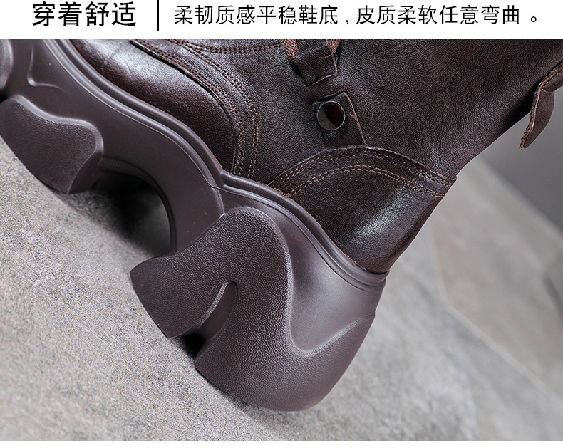 탑 레이어 소 가죽 마틴 부츠 여성의 가을과 겨울 새로운 하이힐 싱글 부츠 복고풍 영국 스타일 가죽 두꺼운 바닥 두꺼운 발 뒤꿈치 작은 짧은 부츠