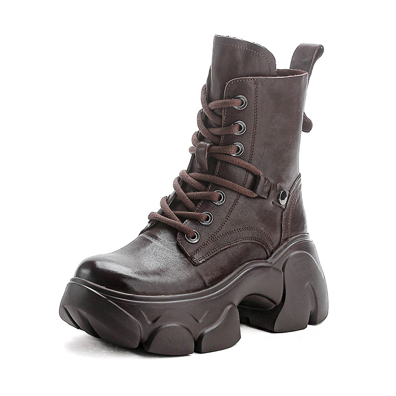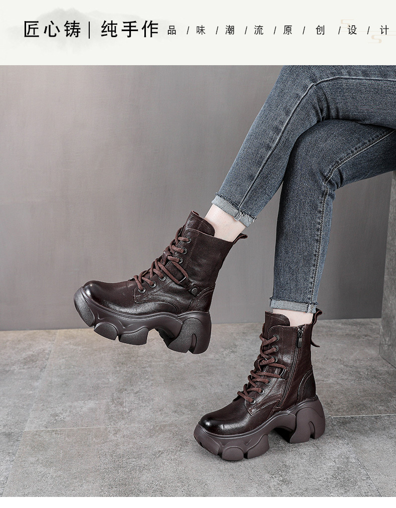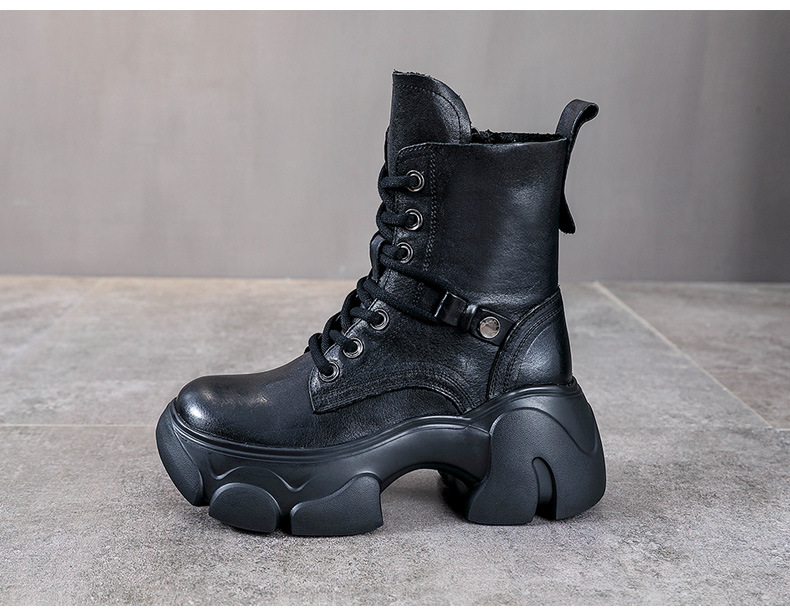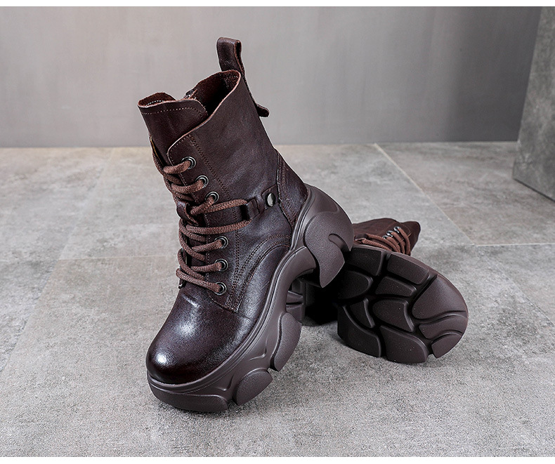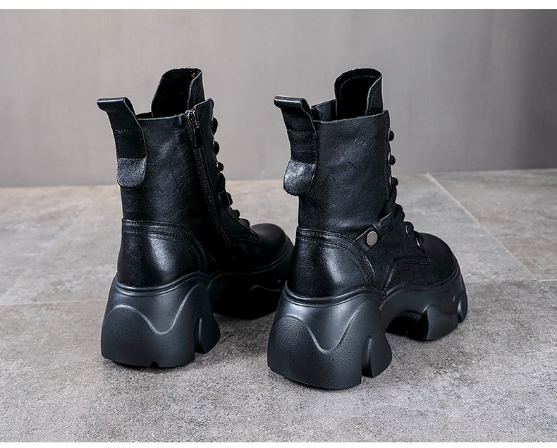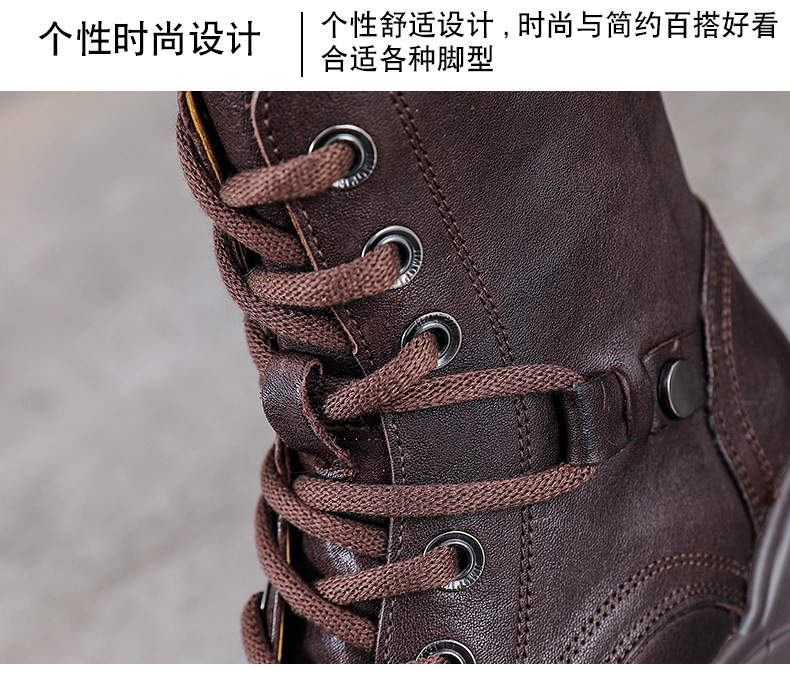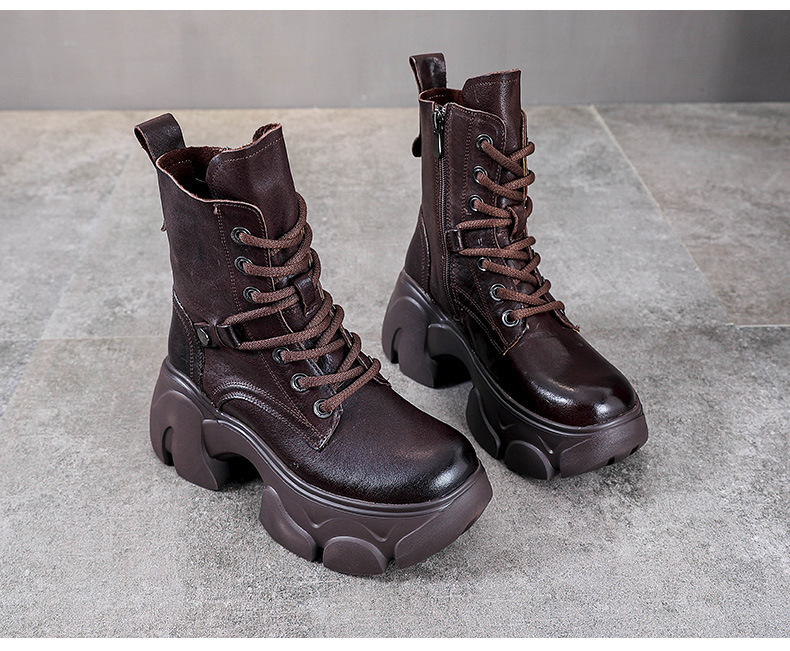 탑 레이어 소 가죽 마틴 부츠 여성의 가을과 겨울 새로운 하이힐 싱글 부츠 복고풍 영국 스타일 가죽 두꺼운 바닥 두꺼운 발 뒤꿈치 작은 짧은 부츠