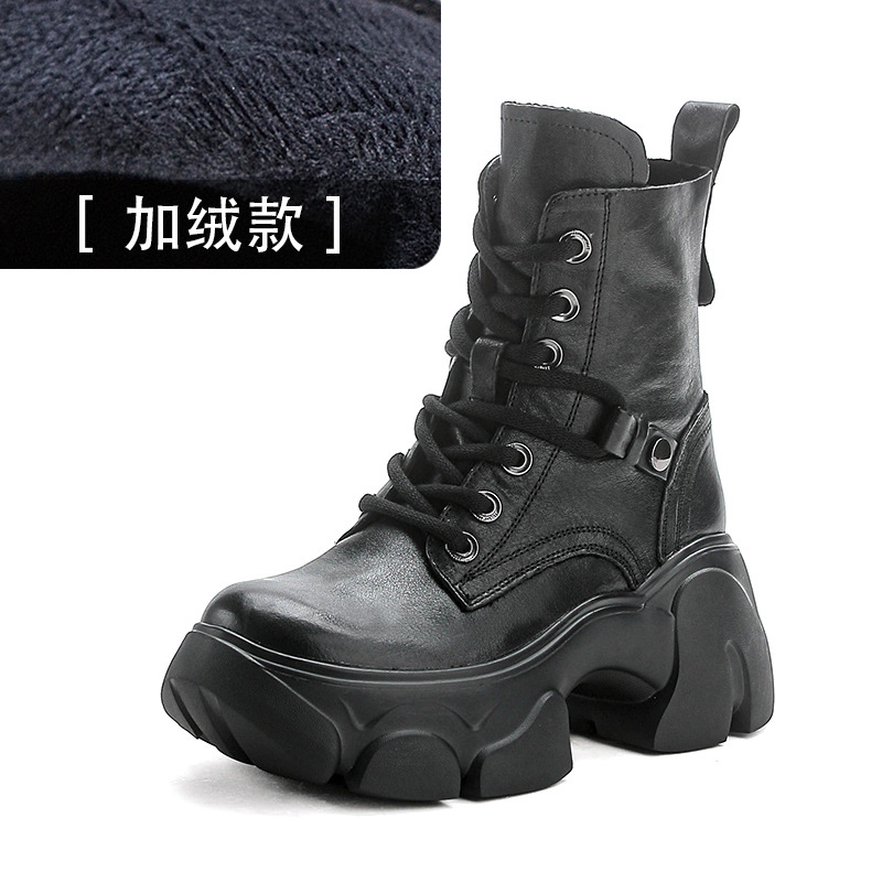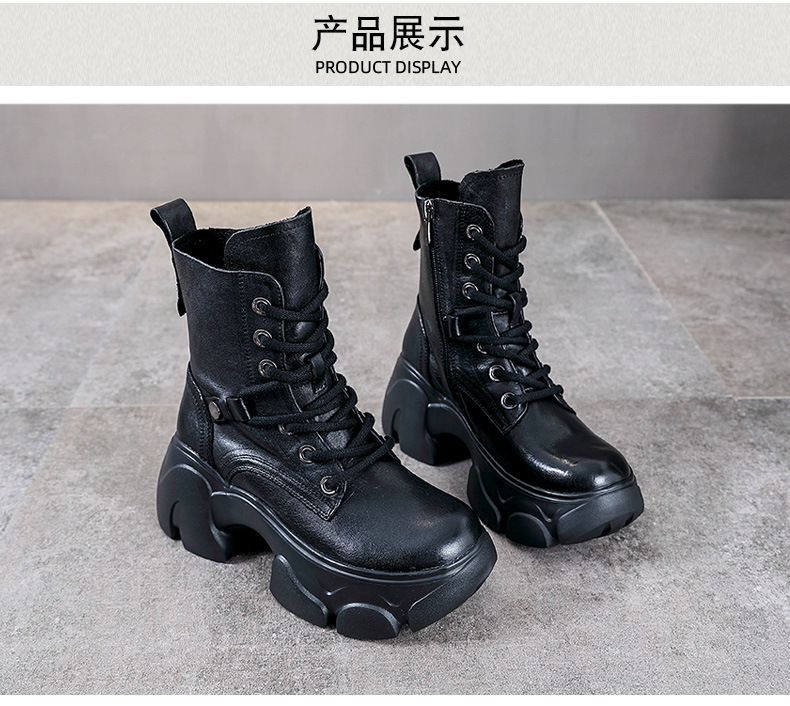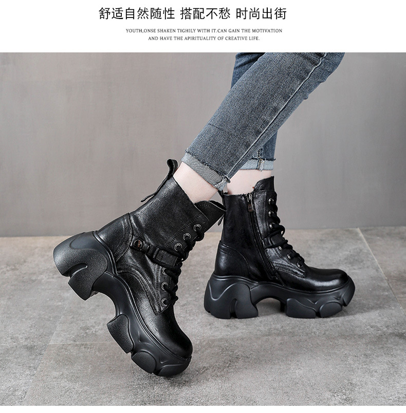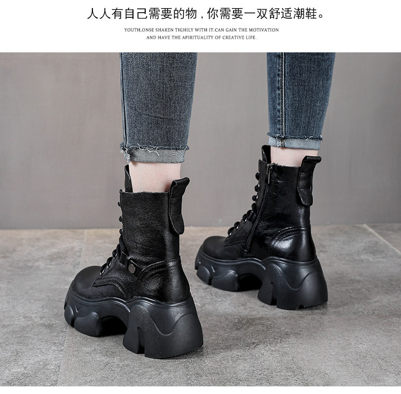 탑 레이어 소 가죽 마틴 부츠 여성의 가을과 겨울 새로운 하이힐 싱글 부츠 복고풍 영국 스타일 가죽 두꺼운 바닥 두꺼운 발 뒤꿈치 작은 짧은 부츠스토어 가기