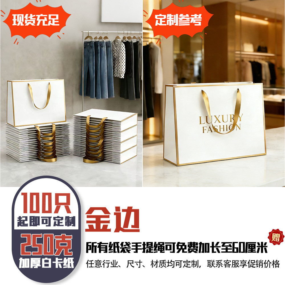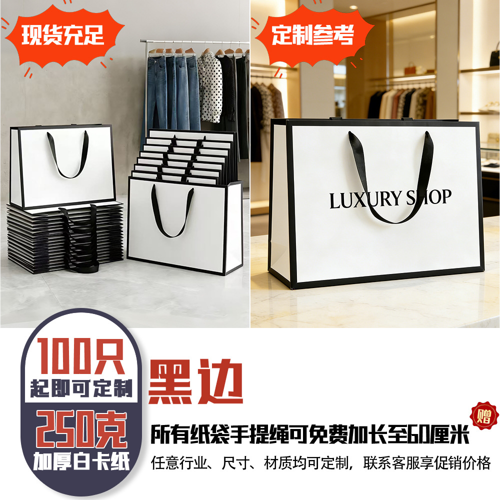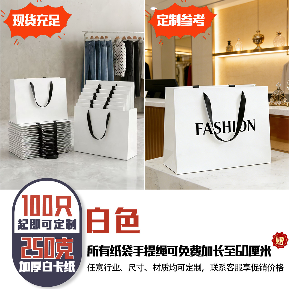 의류 매장용 맞춤형 의류 포장 쇼핑 선물 가방, 로고 인쇄 가능한 고급 흰색 카드지 가방(재고 있음)