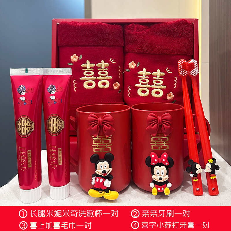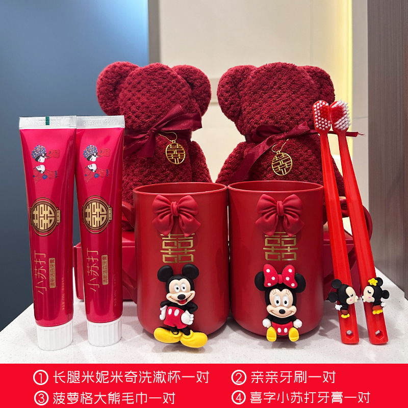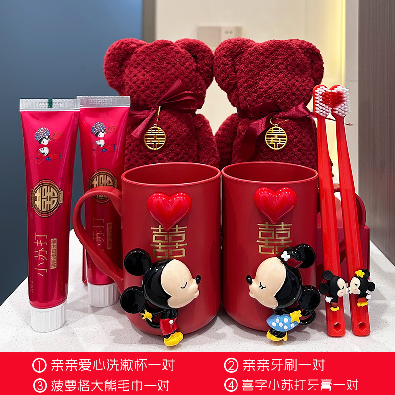 웨딩 브러쉬 머그잔 칫솔 한 쌍의 빨간 세척 세트 커플 무더워시 머그잔 빗 비누 상자 수건 치약스토어 가기