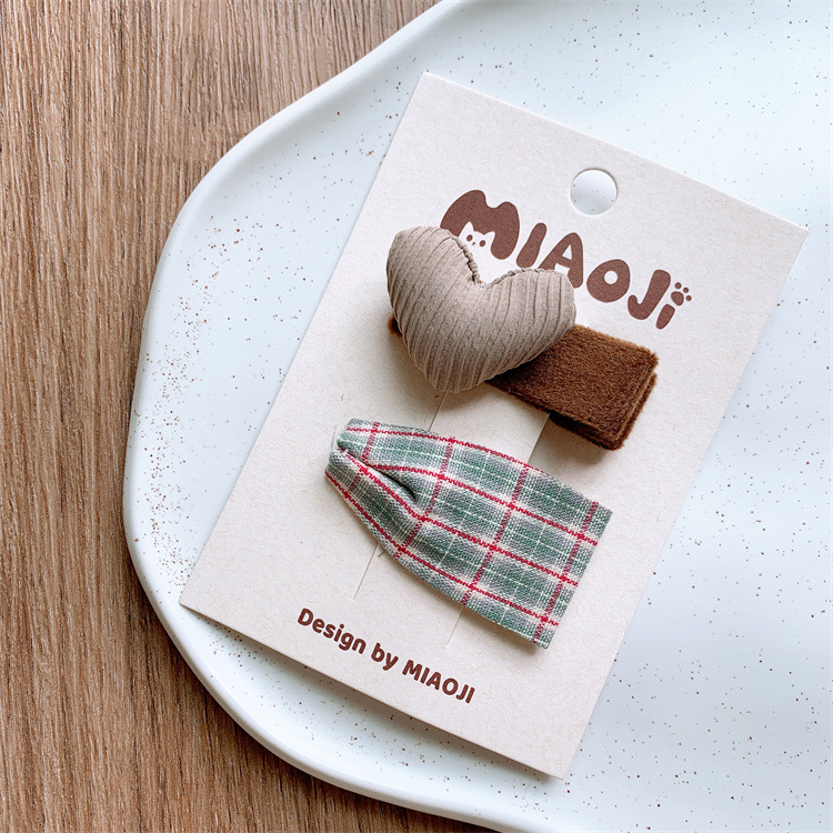 가을과 겨울 녹색 활 머리핀 어린이 원단 격자 무늬 BB 클립 귀여운 소녀의 방망이 머리 클립 헤어핀스토어 가기