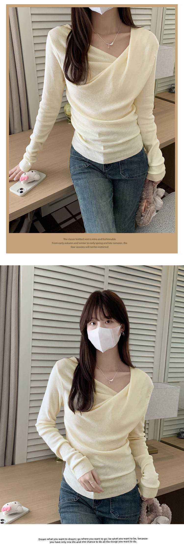 프랑스 스타일 스윙 칼라 긴팔 보틀 니트웨어 여성용 가을 사이드 플리츠 핀치 허리 베블 숄더 달콤하고 매운 세련된 이너 탑스토어 가기