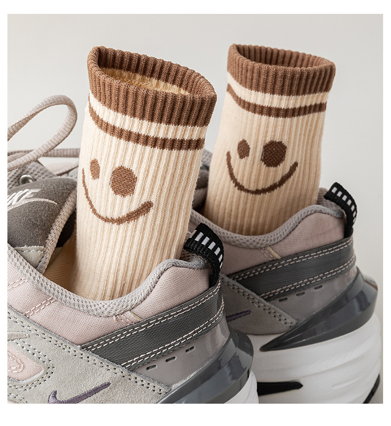 여성용 양말 가을 겨울 중간 길이 양말 스마일리 일본 스타일 봄 2025 신상품 도매 주지 원산지 공장스토어 가기