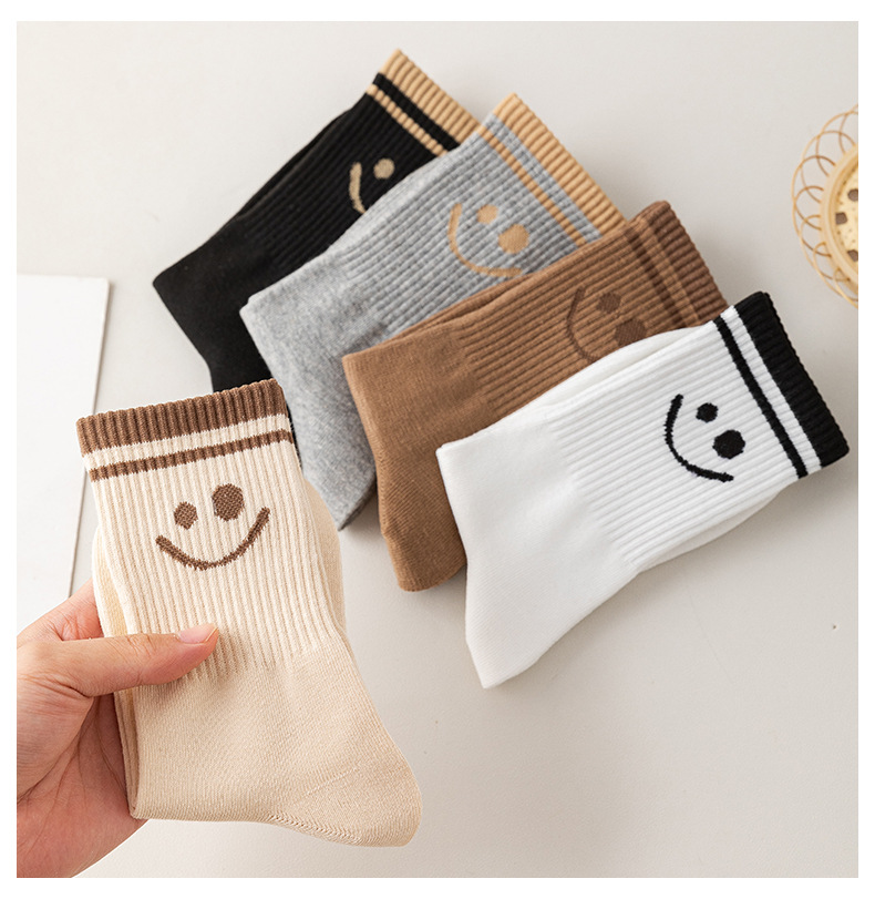 여성용 양말 가을 겨울 중간 길이 양말 스마일리 일본 스타일 봄 2025 신상품 도매 주지 원산지 공장