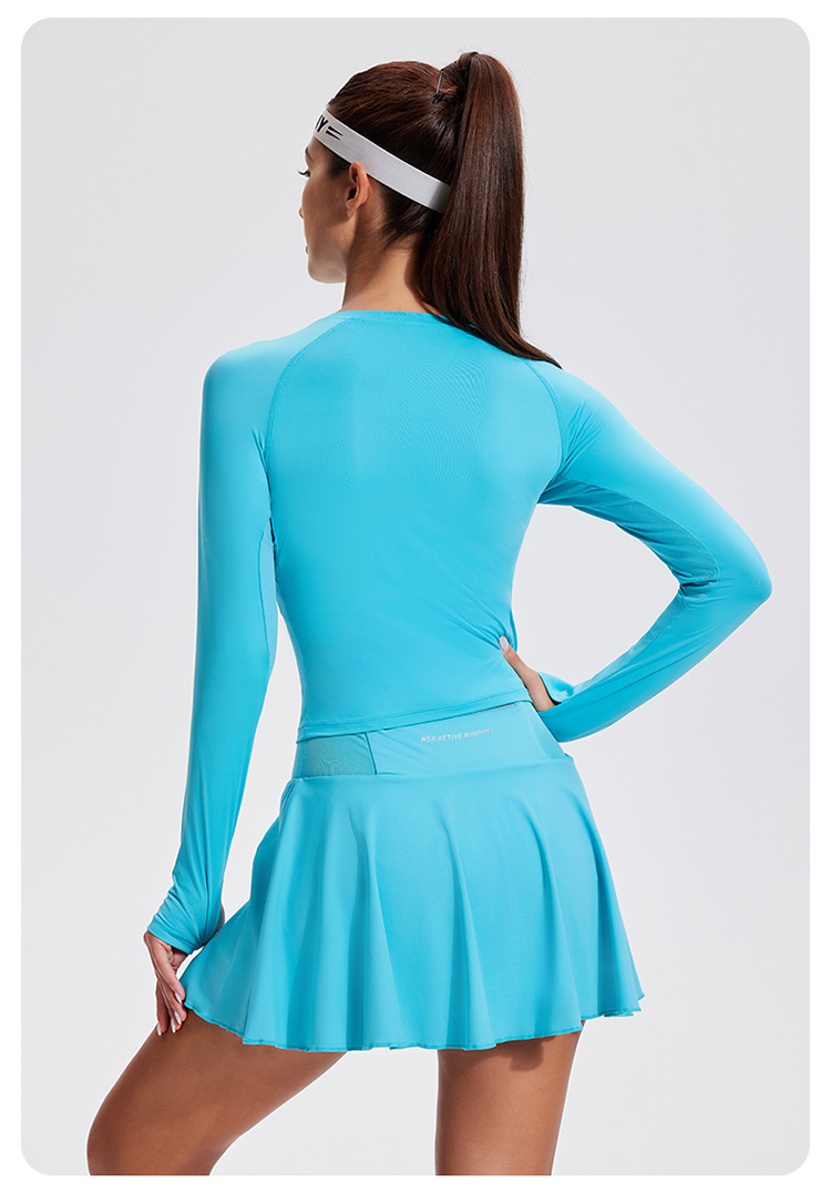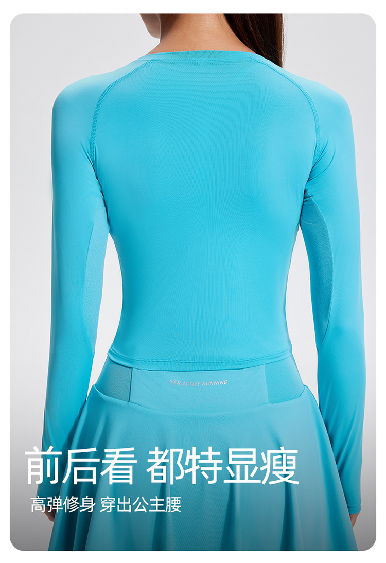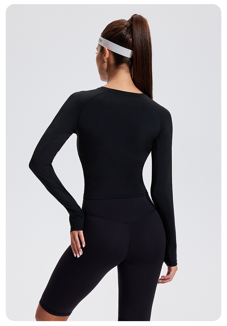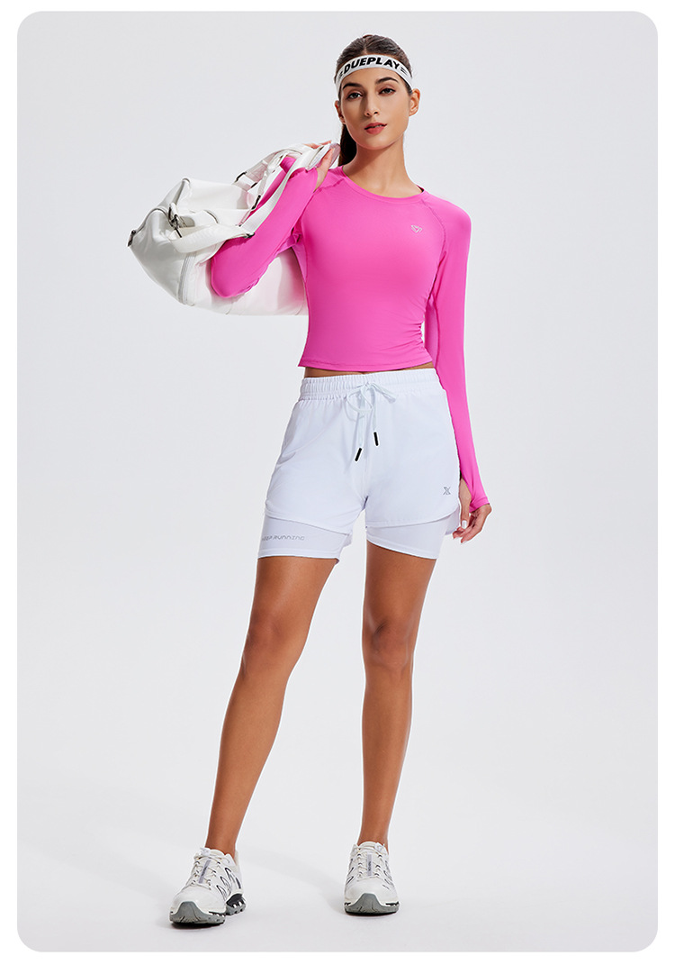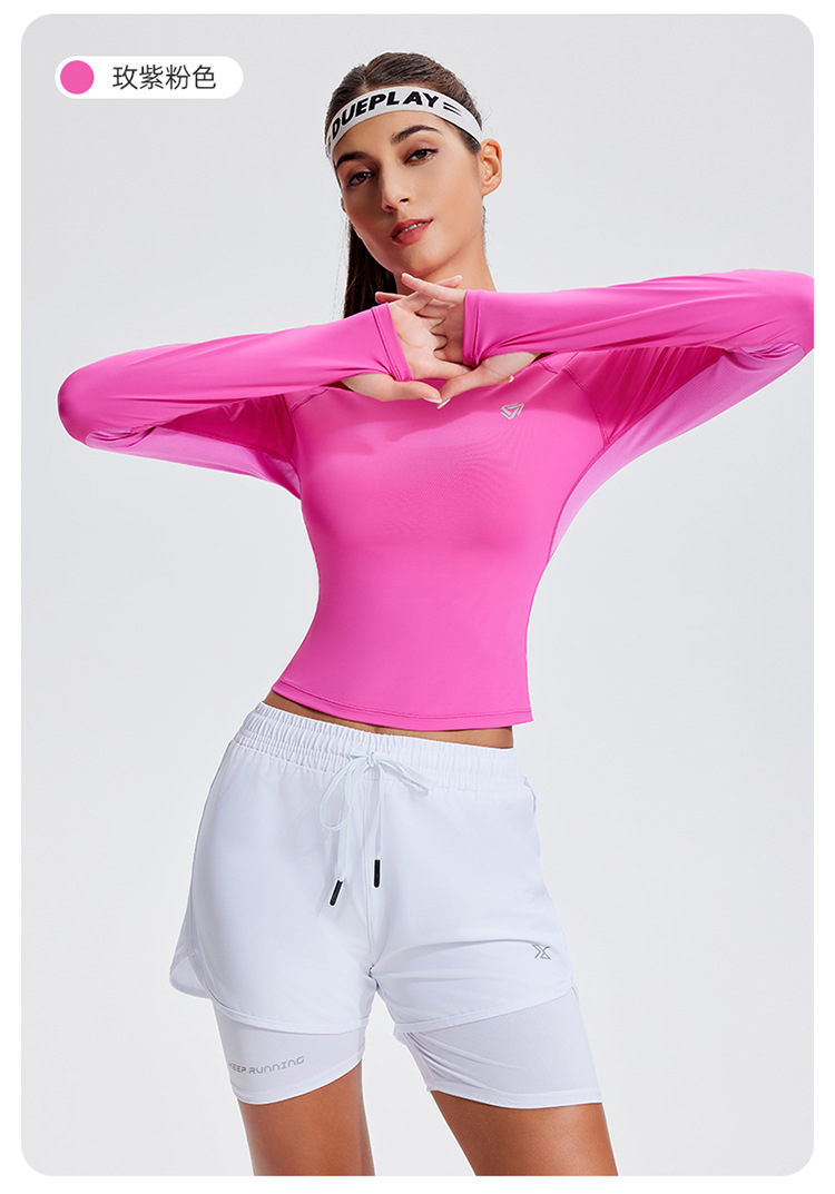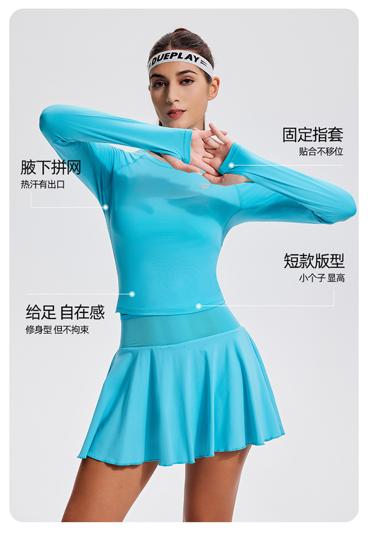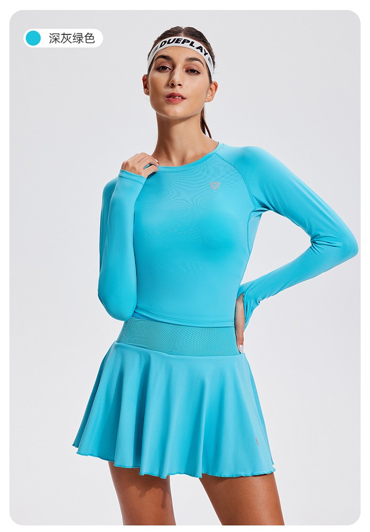 스포츠 긴 소매 여성의 달리기 티셔츠 봄과 여름 퀵 드라이 버클 타이트 짧은 라운드 넥 슬림-적합 테니스 피트니스 세트