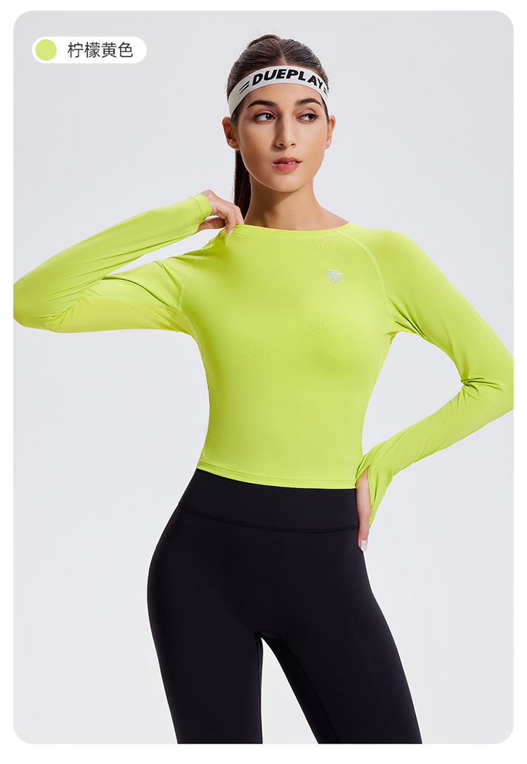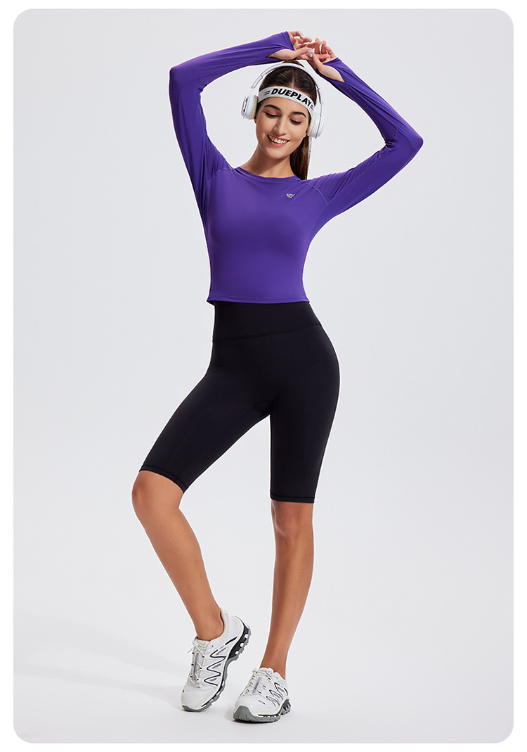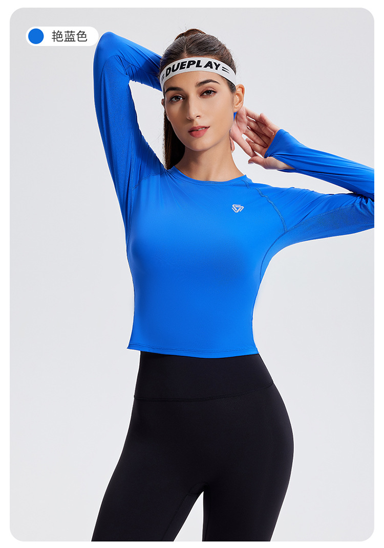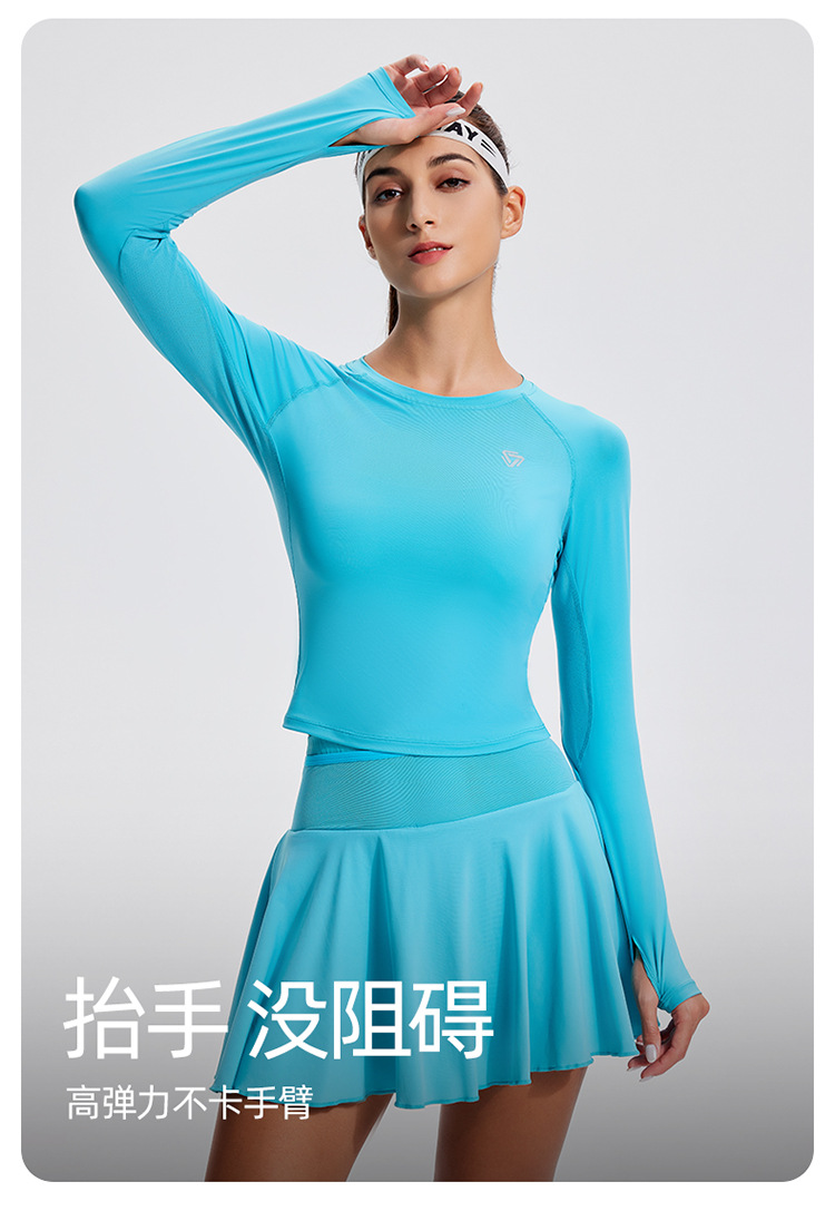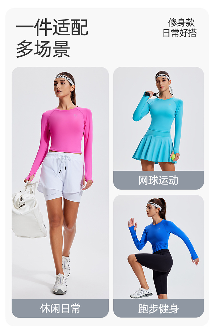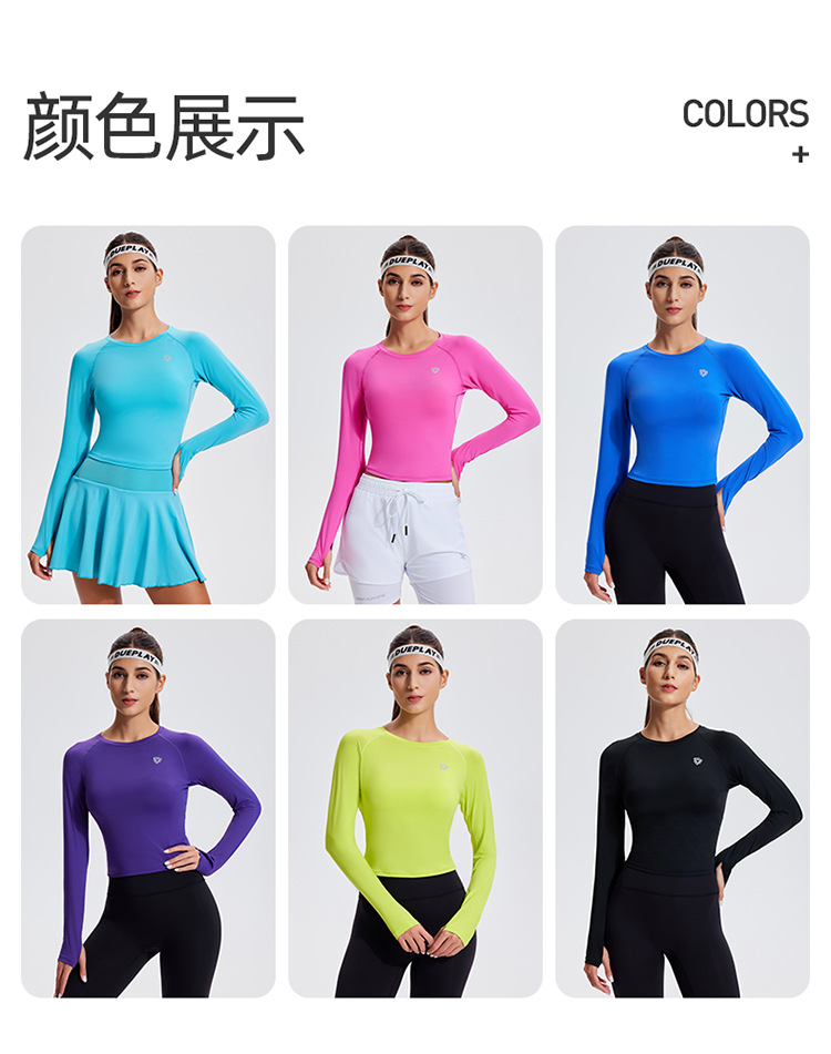 스포츠 긴 소매 여성의 달리기 티셔츠 봄과 여름 퀵 드라이 버클 타이트 짧은 라운드 넥 슬림-적합 테니스 피트니스 세트스토어 가기