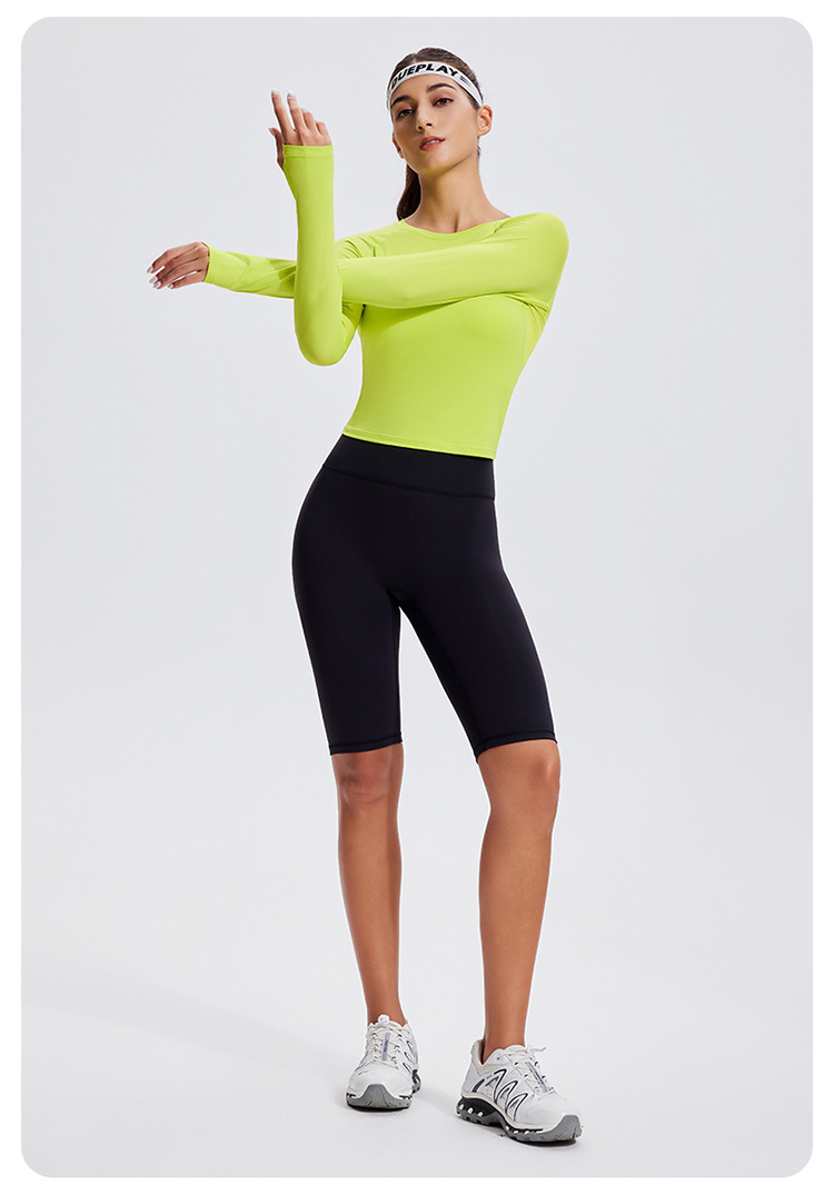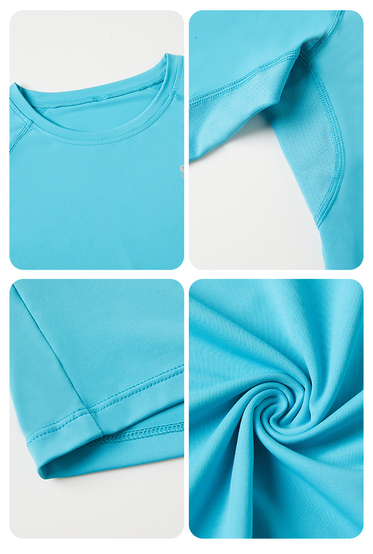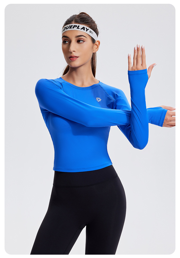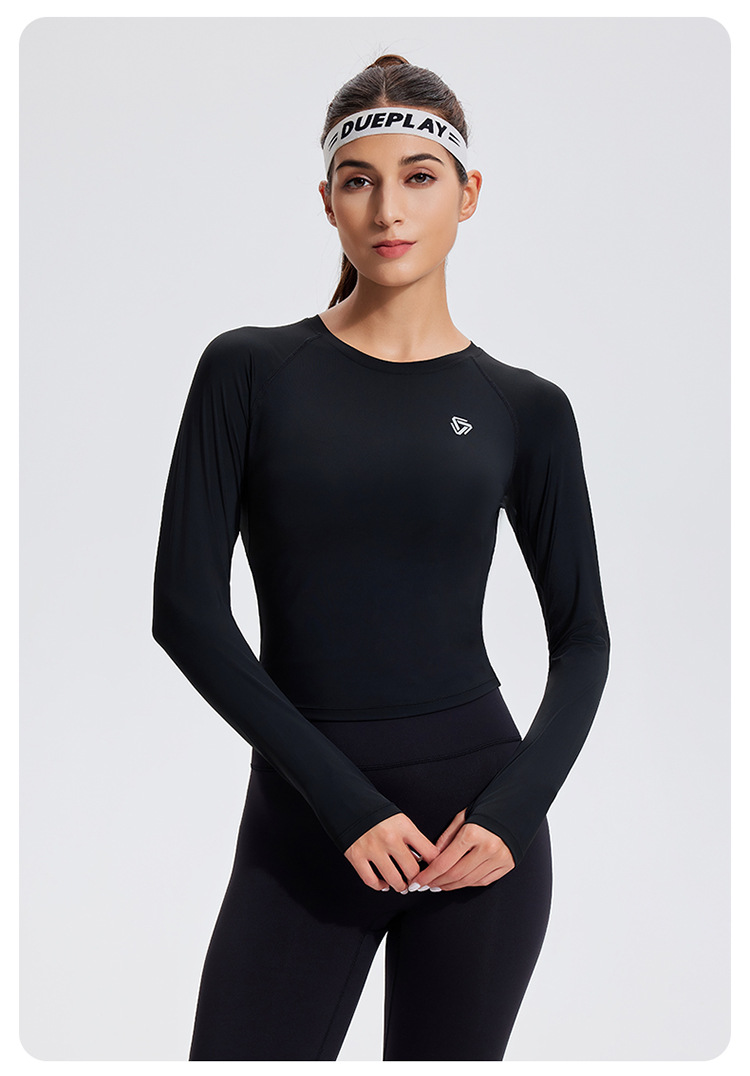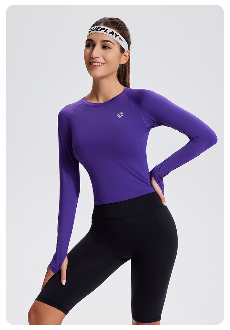 스포츠 긴 소매 여성의 달리기 티셔츠 봄과 여름 퀵 드라이 버클 타이트 짧은 라운드 넥 슬림-적합 테니스 피트니스 세트스토어 가기