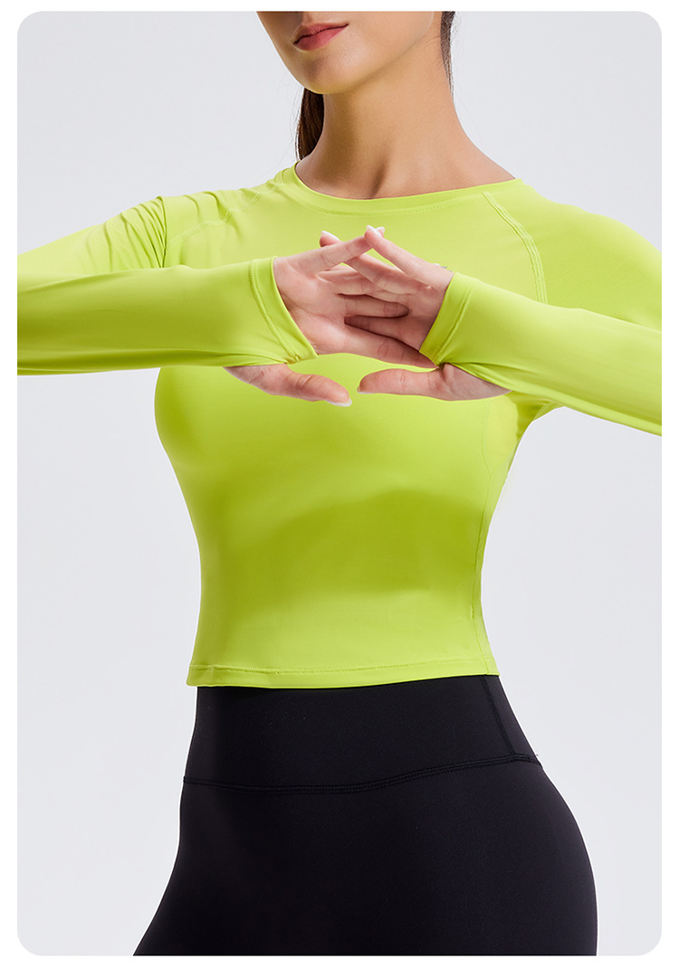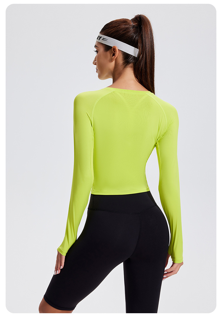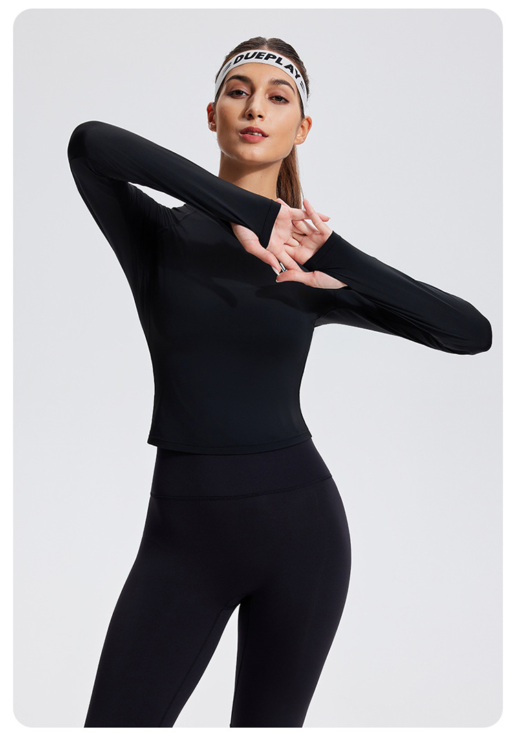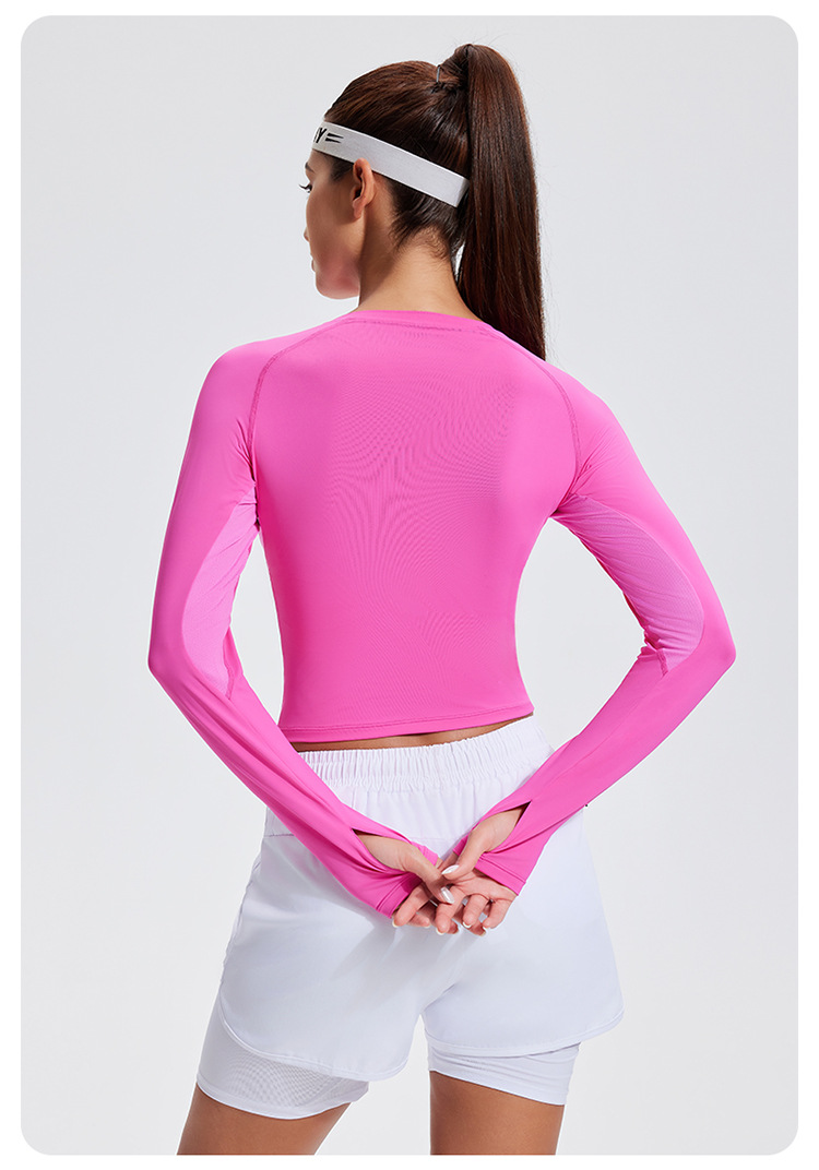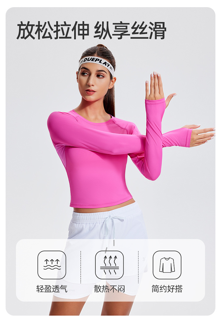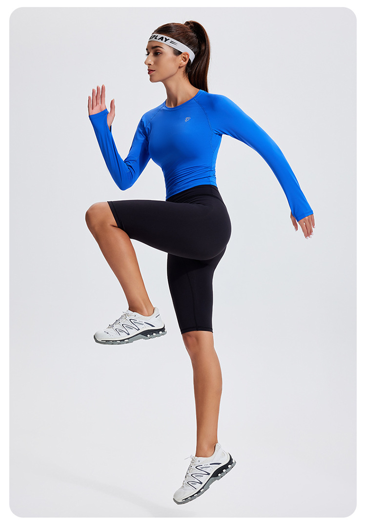 스포츠 긴 소매 여성의 달리기 티셔츠 봄과 여름 퀵 드라이 버클 타이트 짧은 라운드 넥 슬림-적합 테니스 피트니스 세트스토어 가기