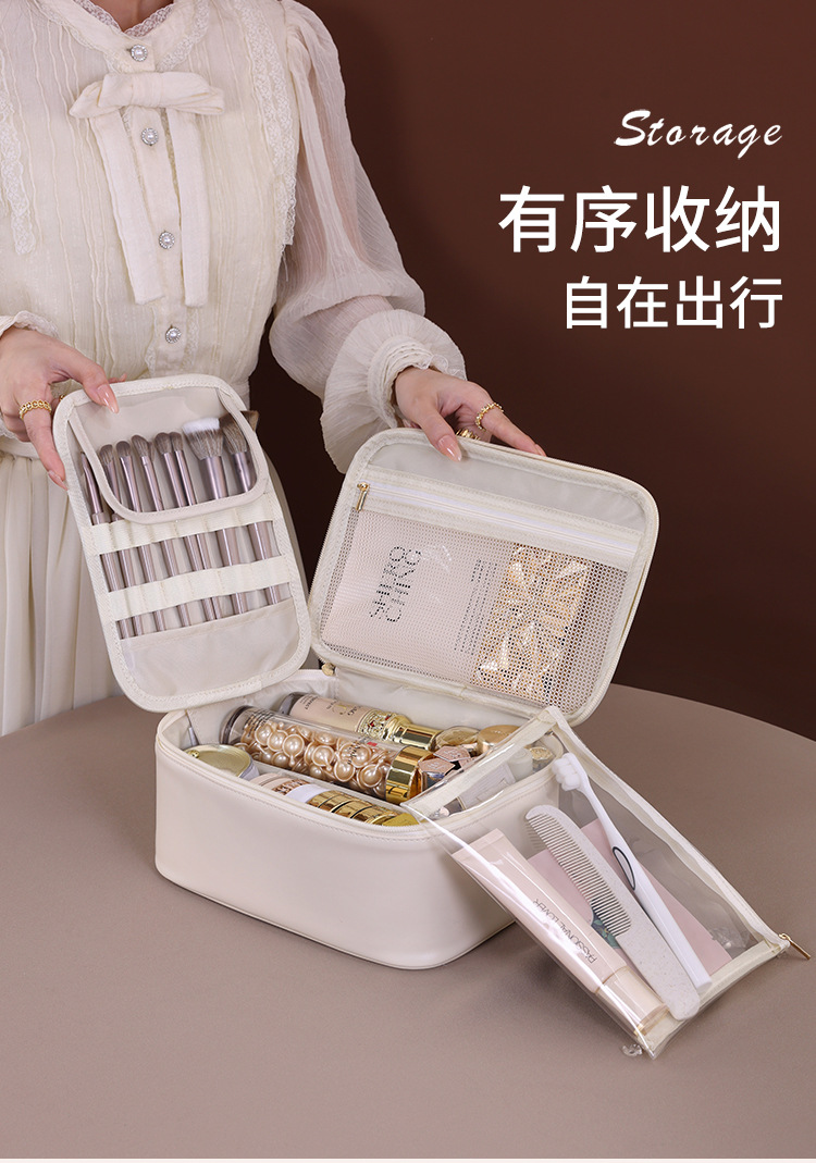 국경 간 뜨거운 판매 무료 포장 화장품 가방 건조하고 젖은 분리 대용량 고급 휴대용 pu 화장품 보관 가방스토어 가기