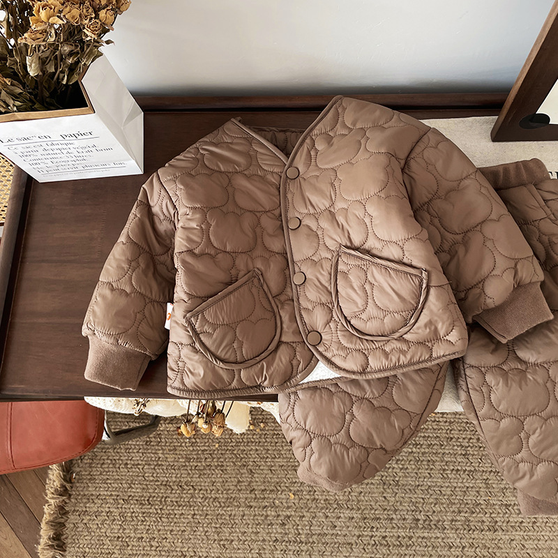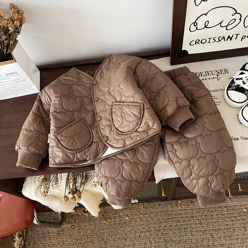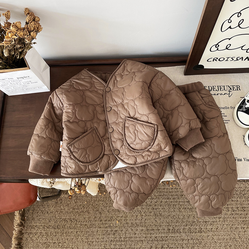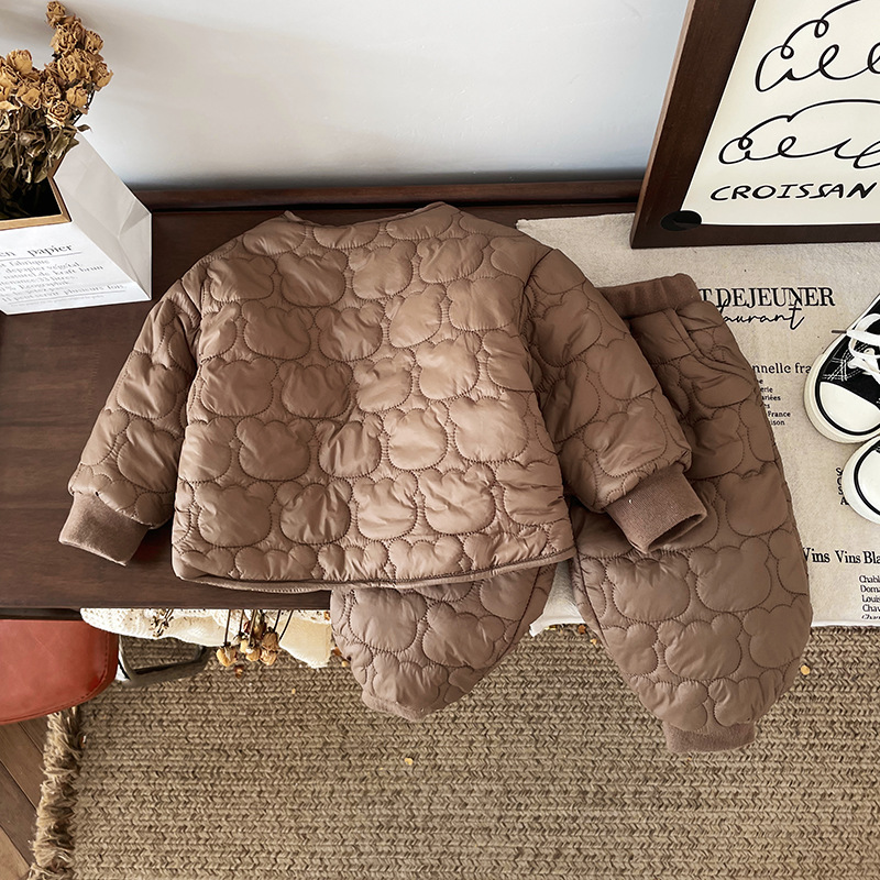 [재고] QT245775 어린이 세트 2024 가을과 겨울 새 아기 기모 두꺼운면 패딩 재킷 조수