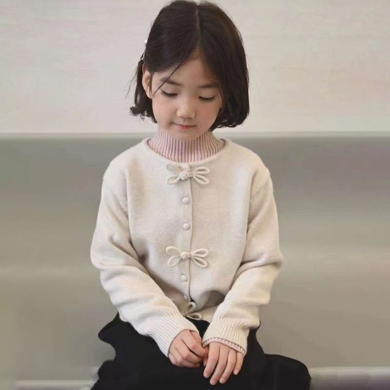캐주얼한 중국식 단추 스웨터 가디건 2025 가을 여자아이 레트로 디자인 리본 달린 여유로운 스타일 니트웨어