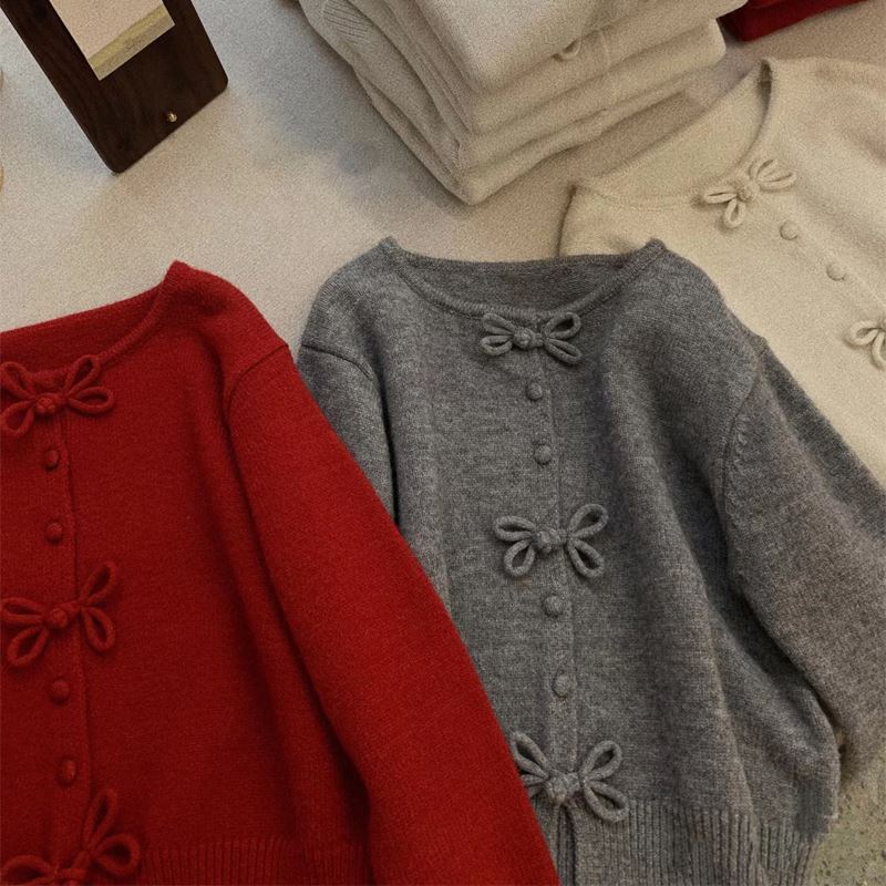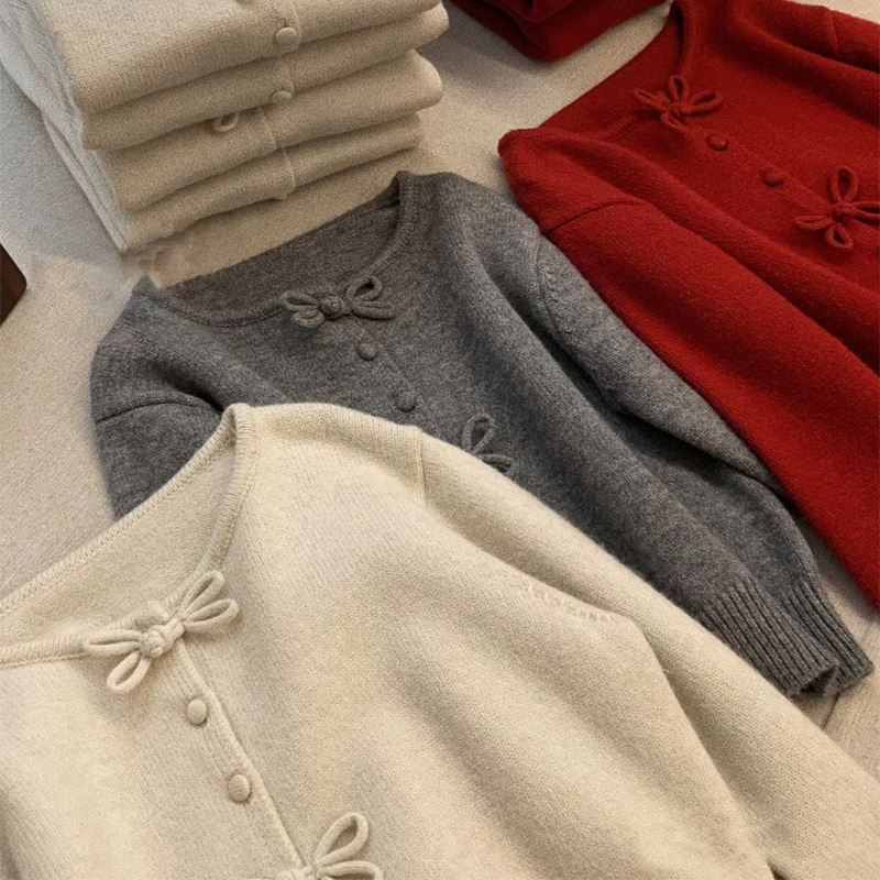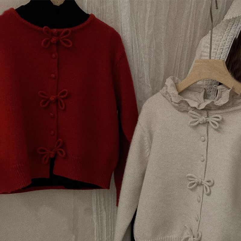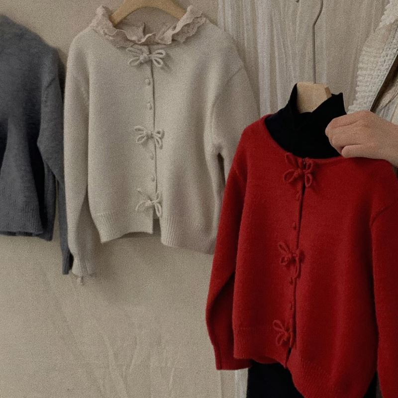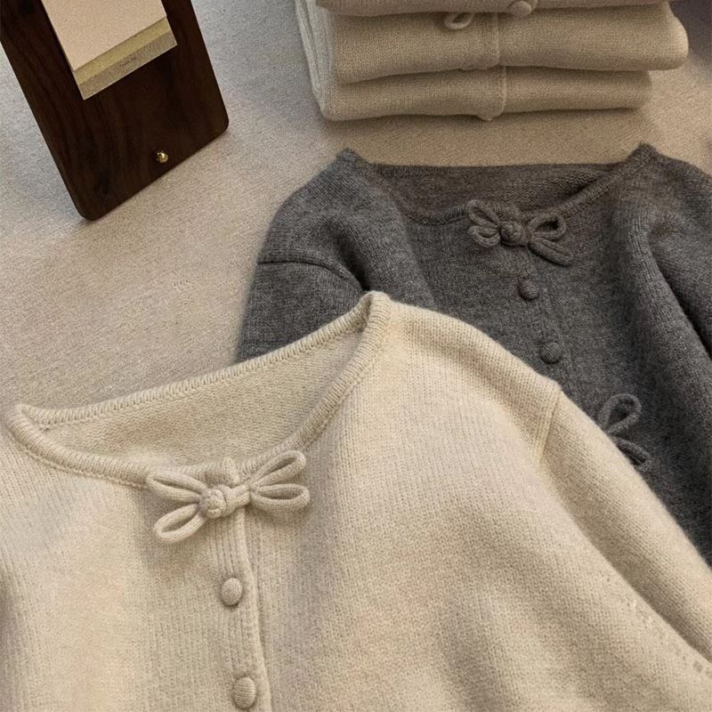 캐주얼한 중국식 단추 스웨터 가디건 2025 가을 여자아이 레트로 디자인 리본 달린 여유로운 스타일 니트웨어스토어 가기