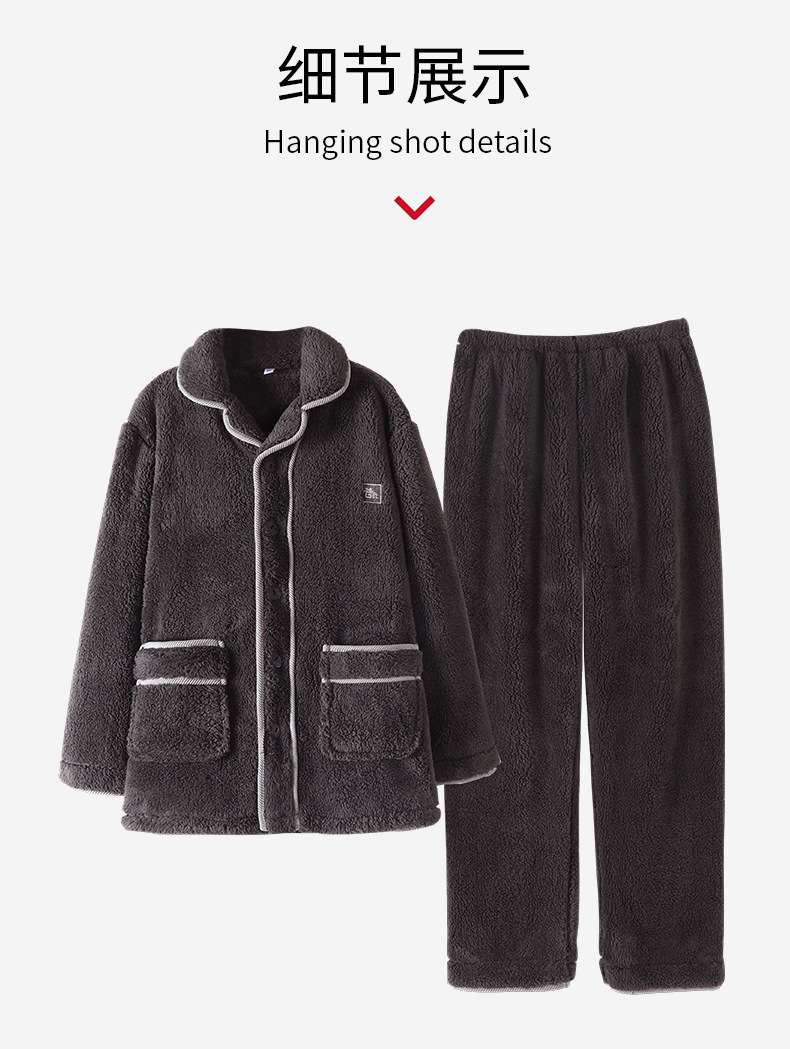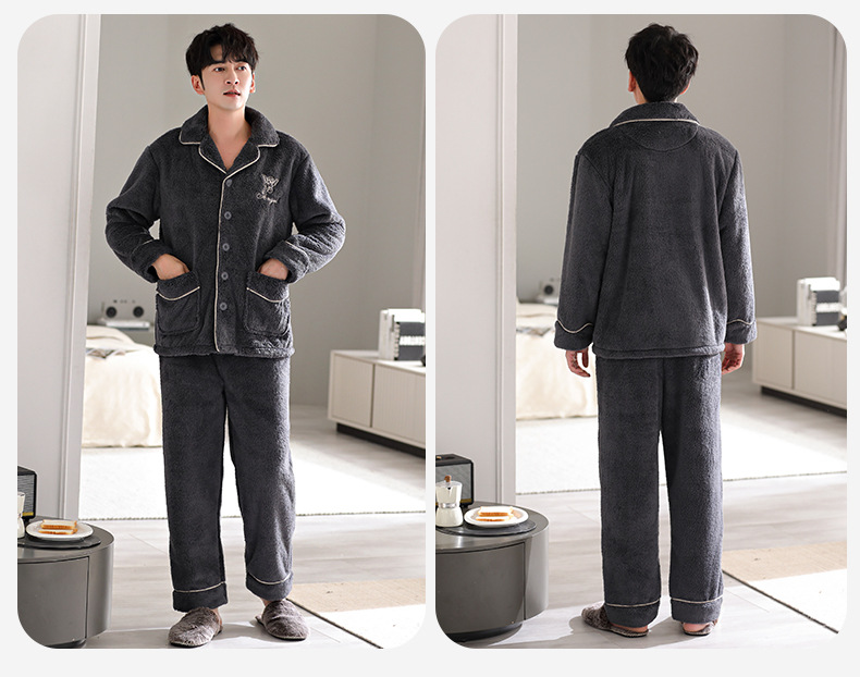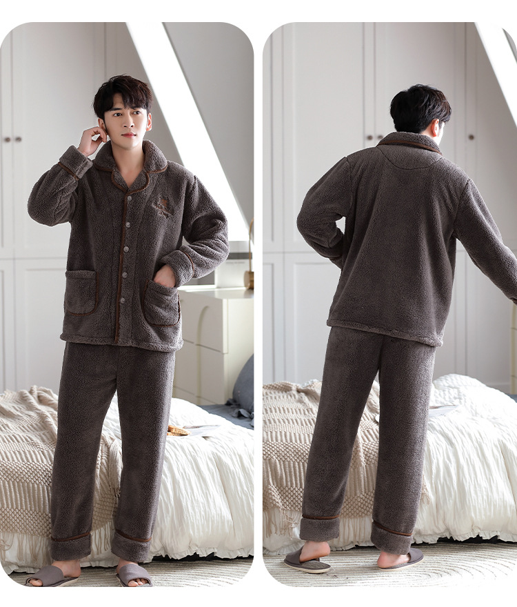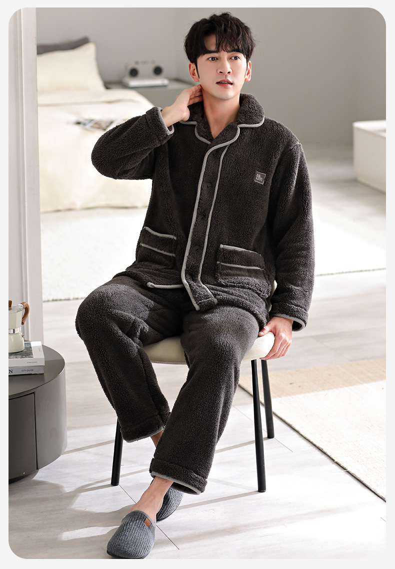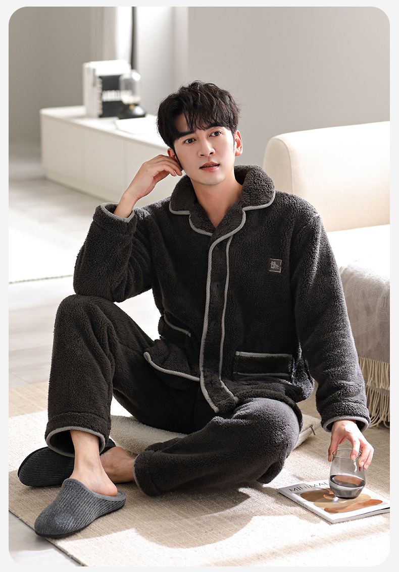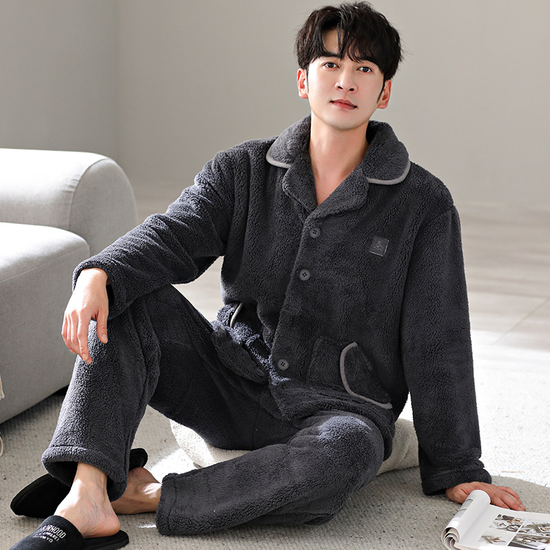 남자 잠옷 겨울 산호 양털 두꺼운 기모 한국 스타일 남자 가을 겨울 따뜻한 플란넬 홈 세트