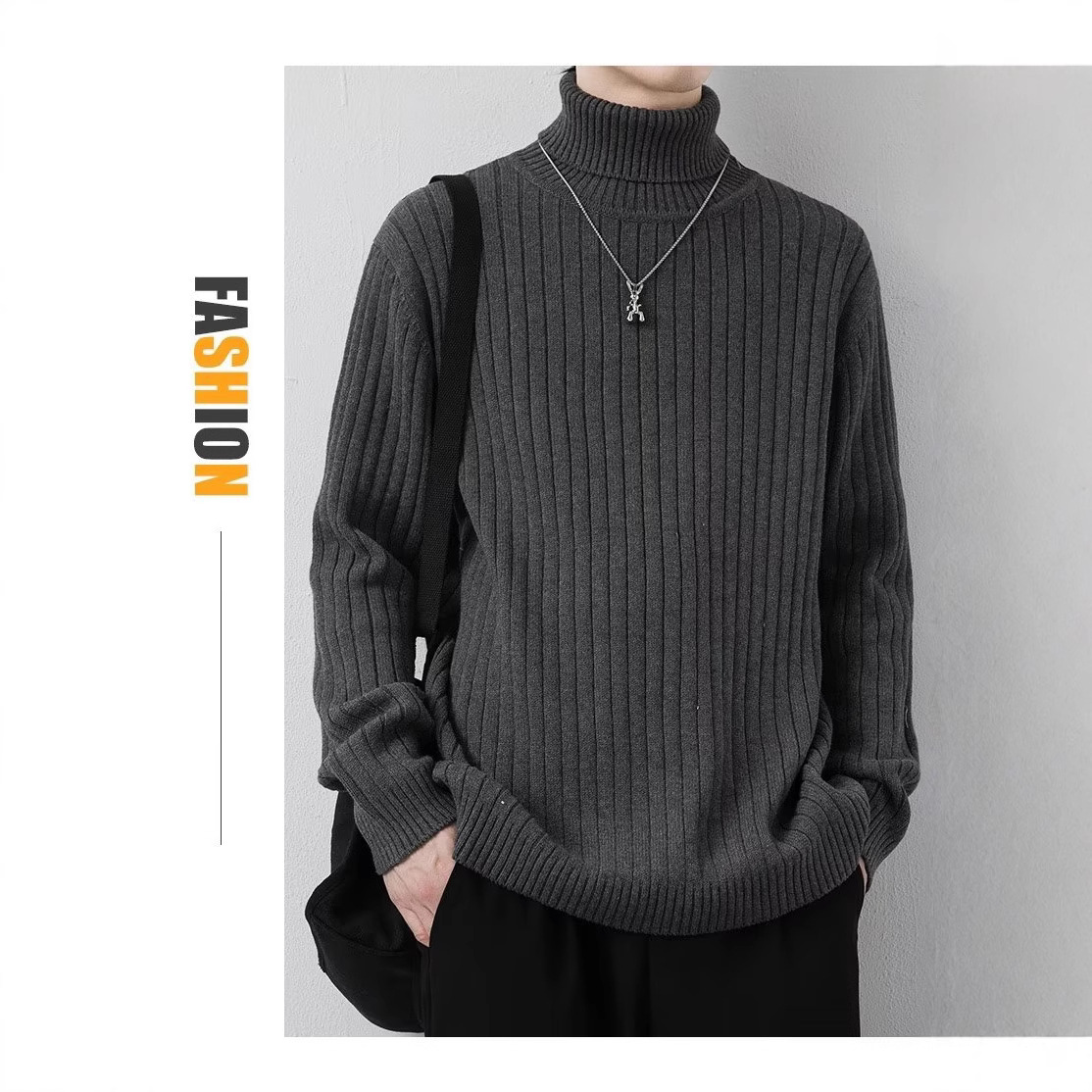 2024 가을 겨울 신상 하이넥 피부친화적인 니트 베이스 셔츠 남성용 다용도 단색 하이넥 스웨터