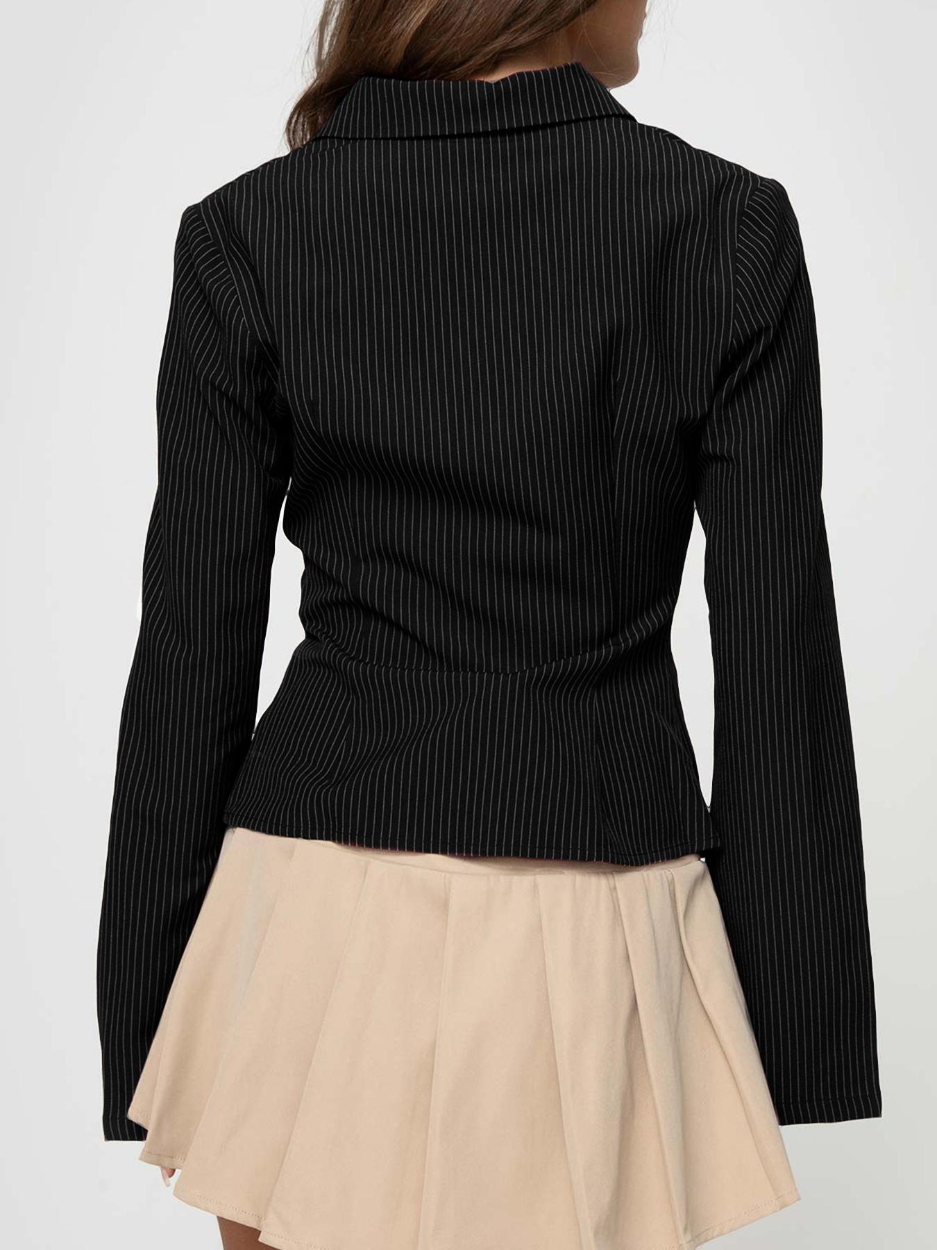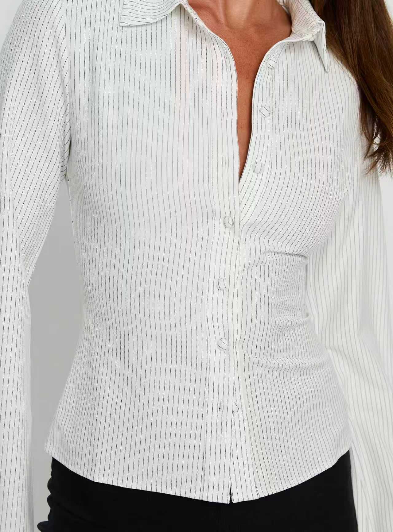 2024 아마존 유럽과 미국의 봄 및 가을 새 옷깃 가슴 카디건 긴 소매 셔츠 슬림핏 올 매치 스트라이프 탑