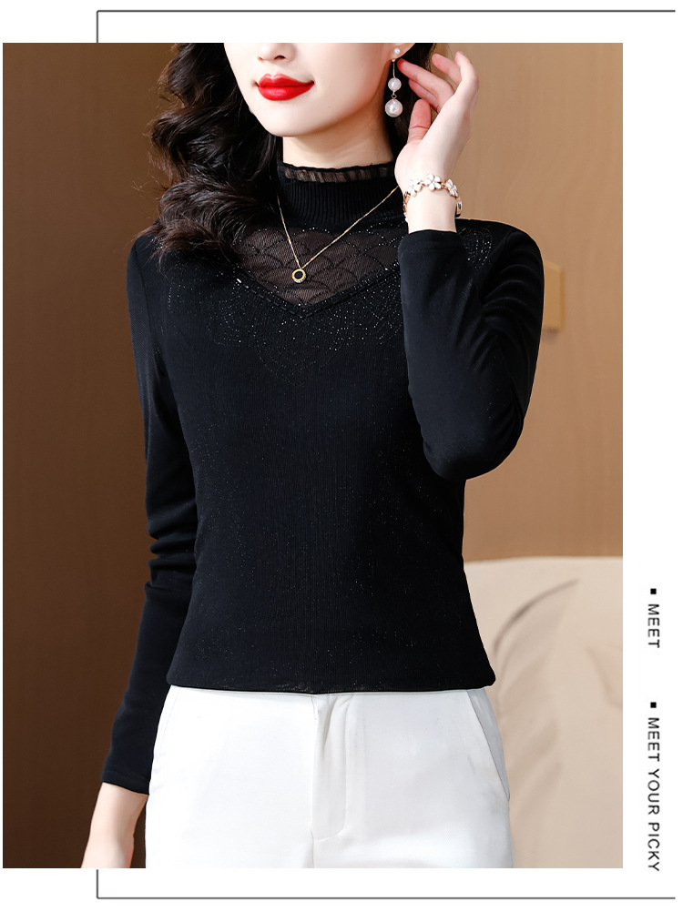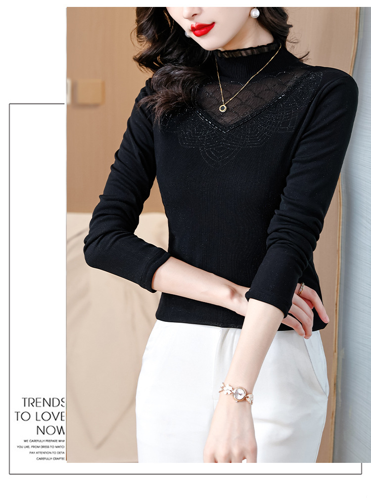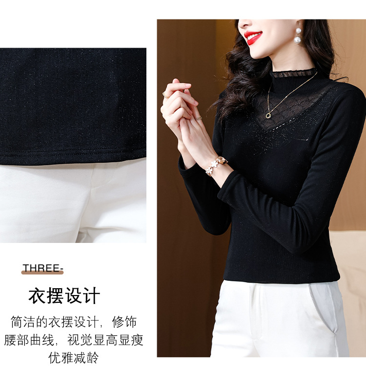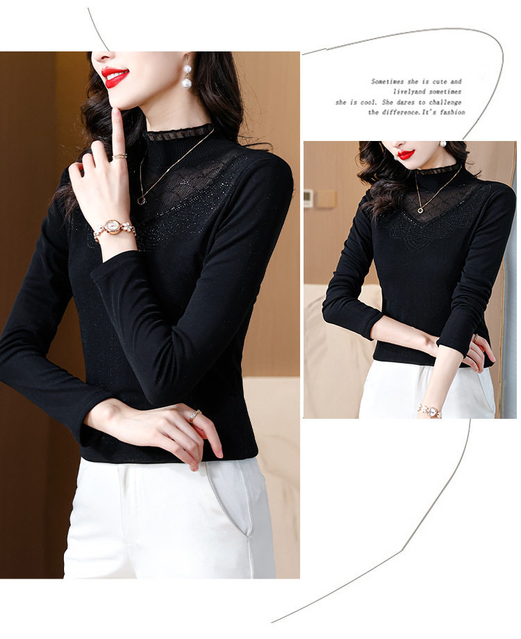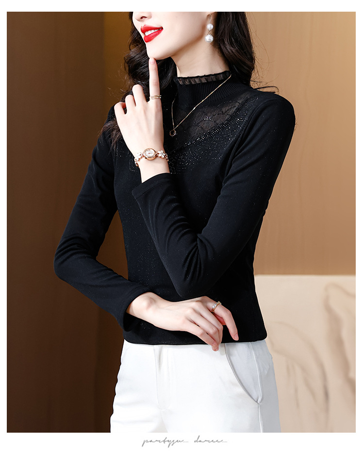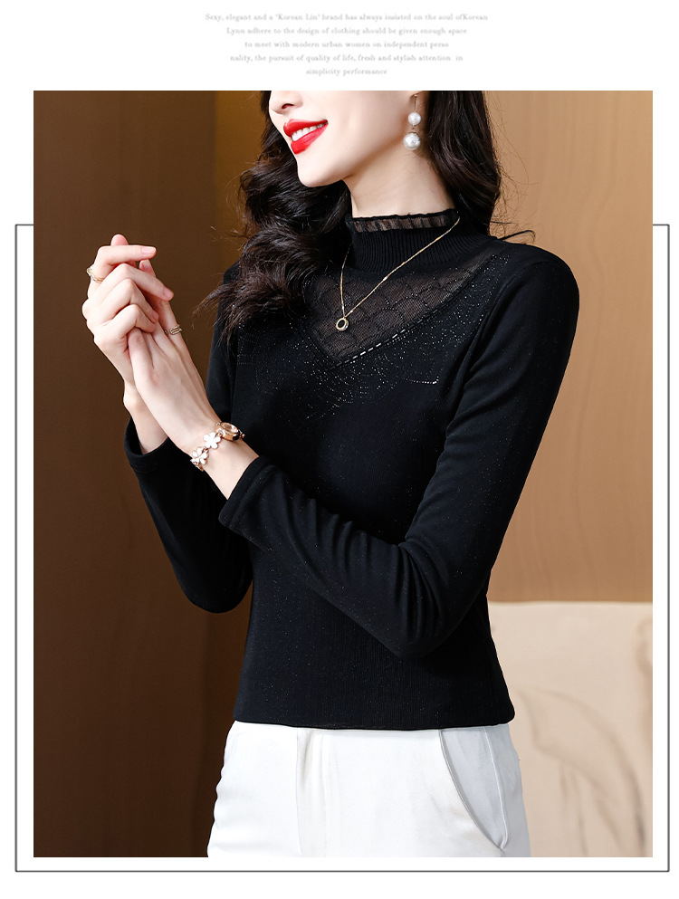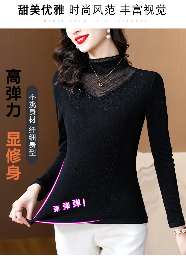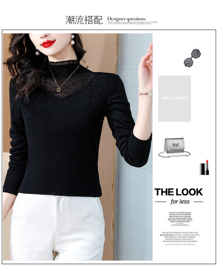 2024 가을과 겨울 슬림핏 슬리밍 긴팔 티셔츠 최고 여자 올 매치 유럽식 작은 셔츠 서양식 베이스 셔츠