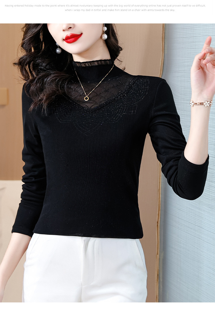2024 가을과 겨울 슬림핏 슬리밍 긴팔 티셔츠 최고 여자 올 매치 유럽식 작은 셔츠 서양식 베이스 셔츠스토어 가기