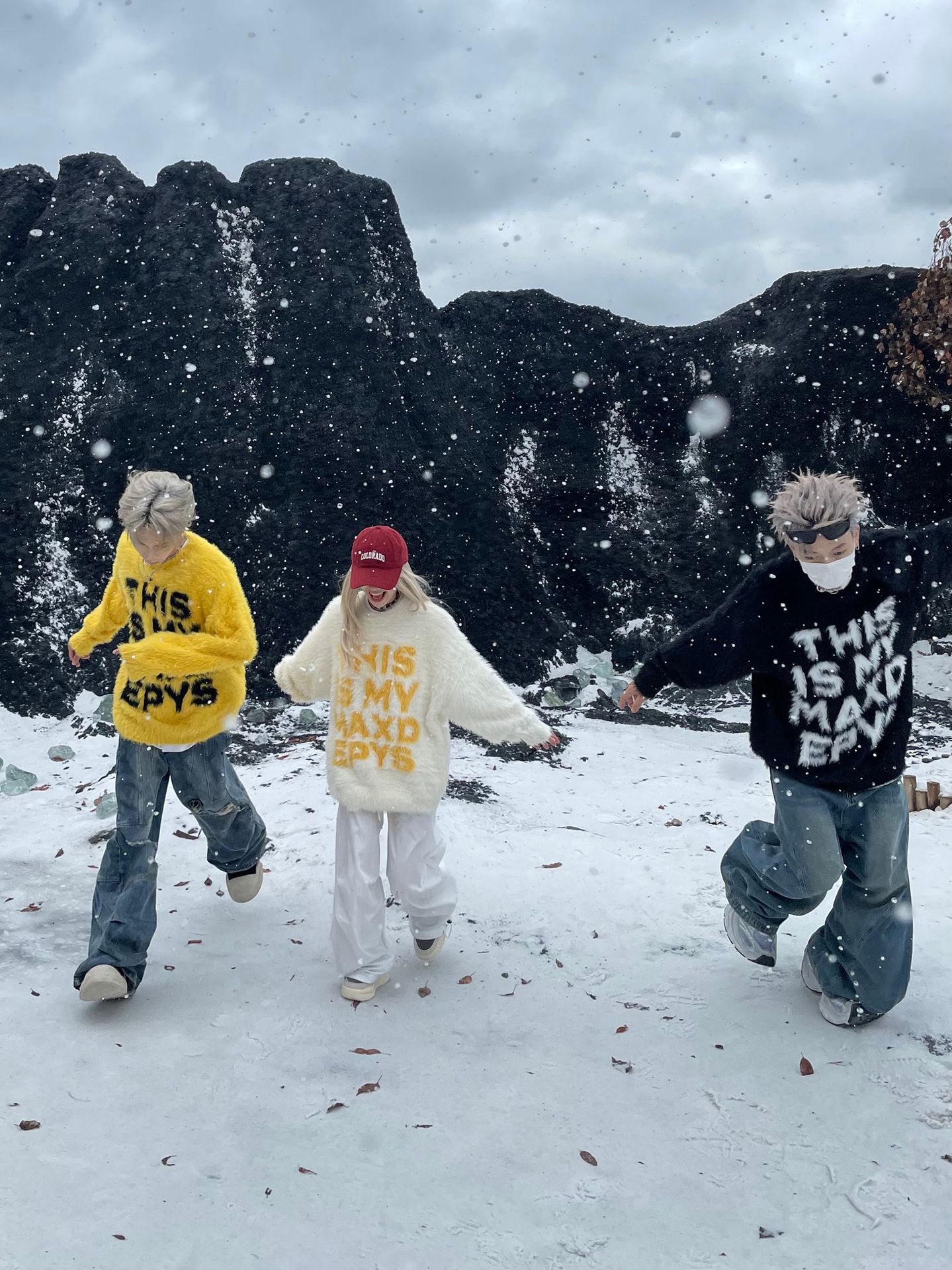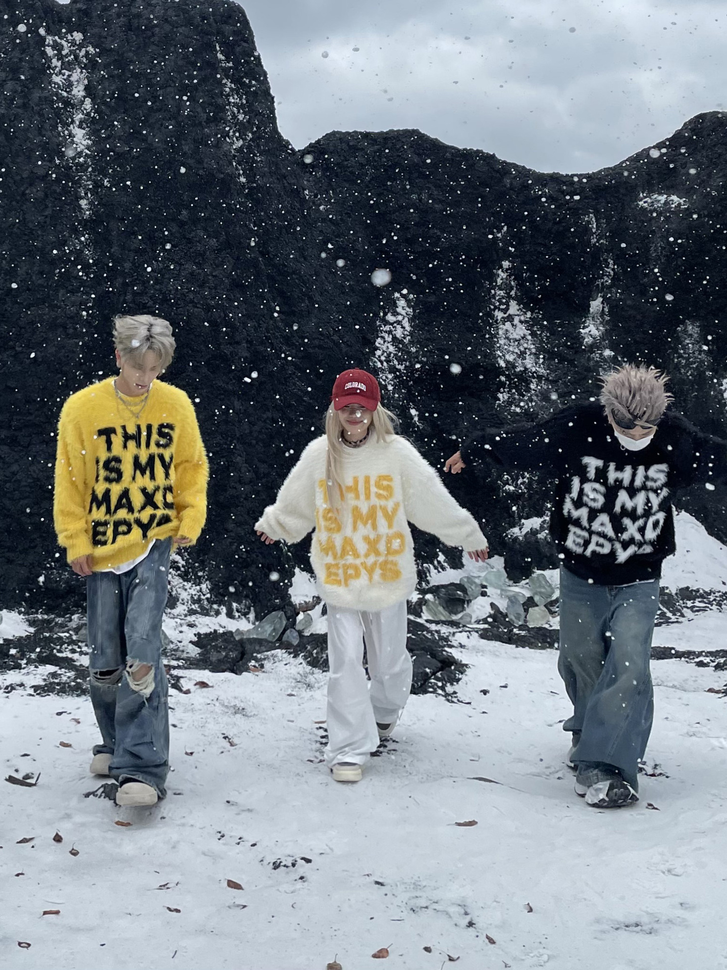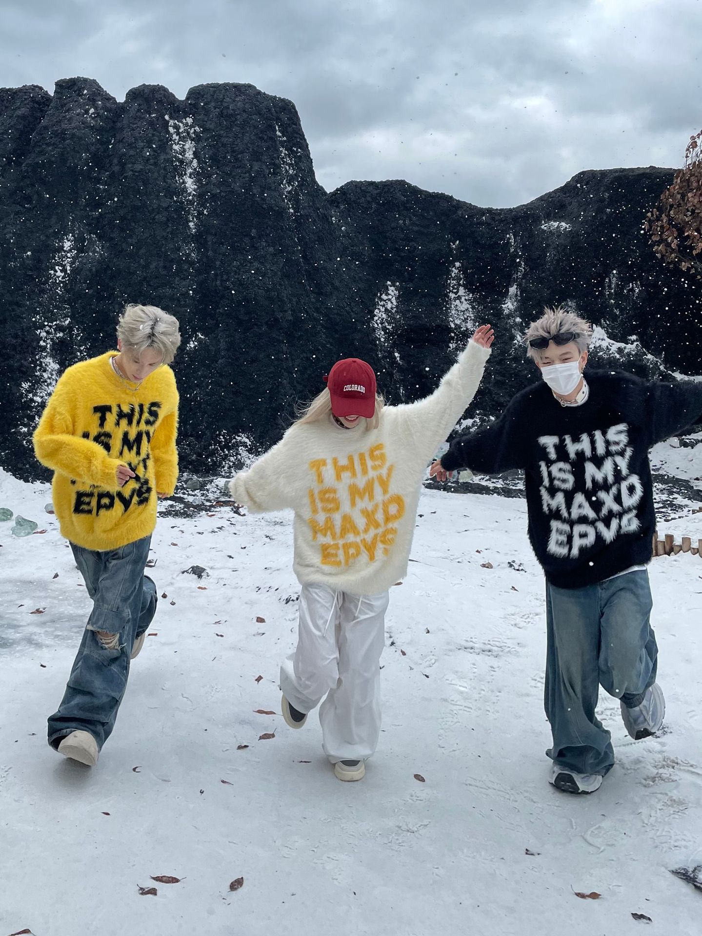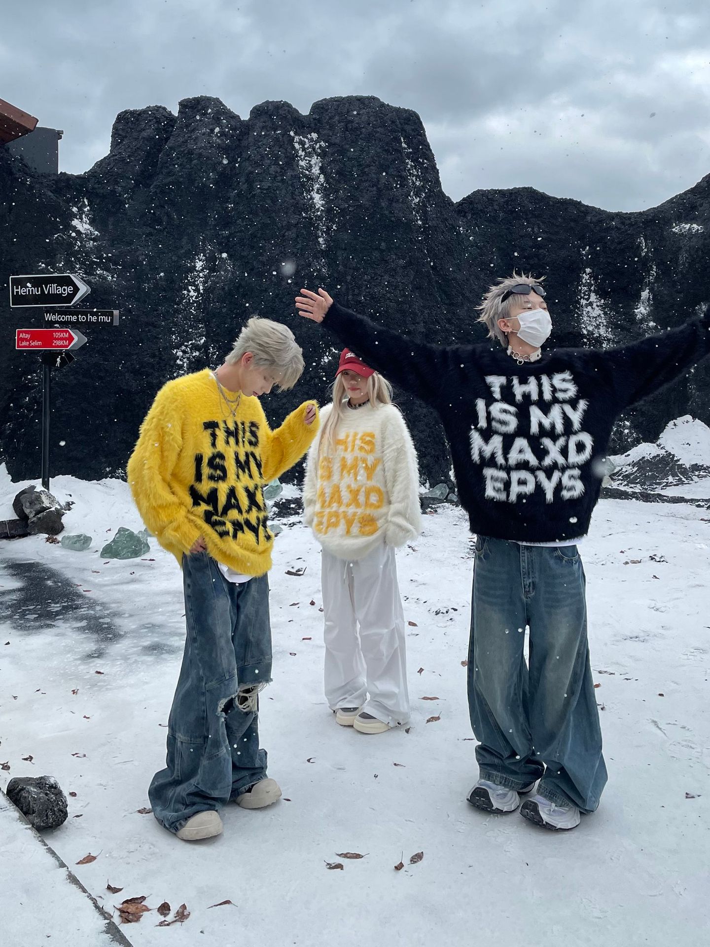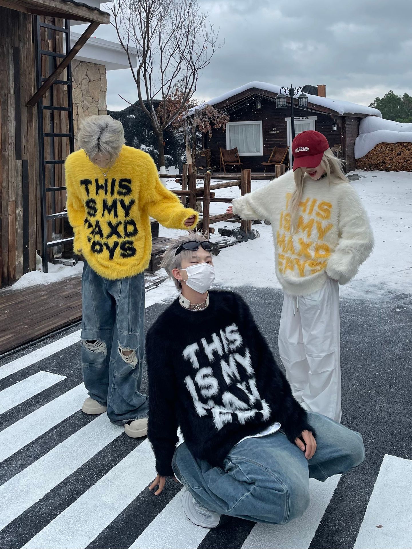 2024 미국 빈티지 편지 밍크 헤어 게으른 스타일 커플 스웨터 남성과 여성의 캐주얼 느슨한 니트 스웨터 재킷스토어 가기