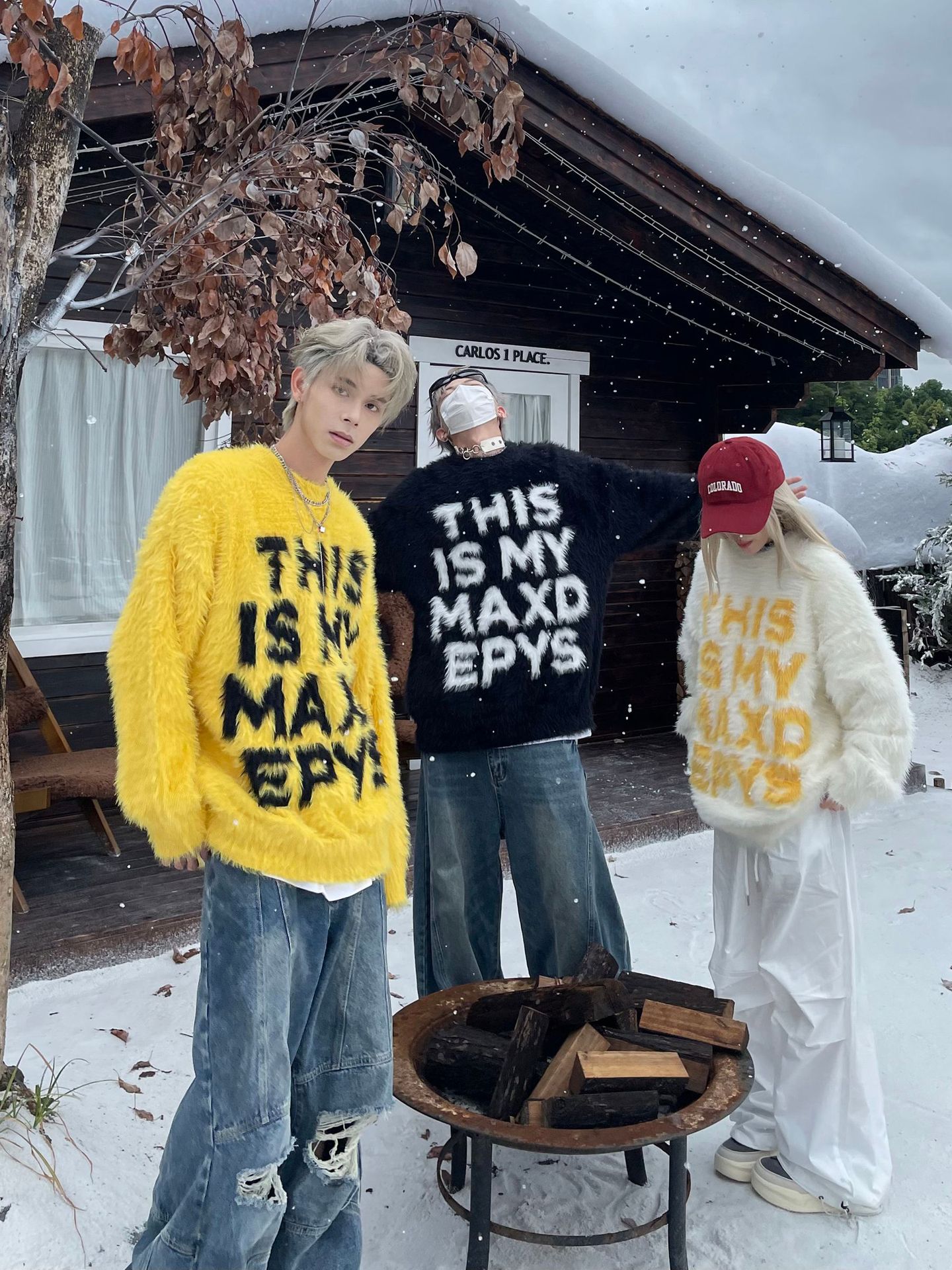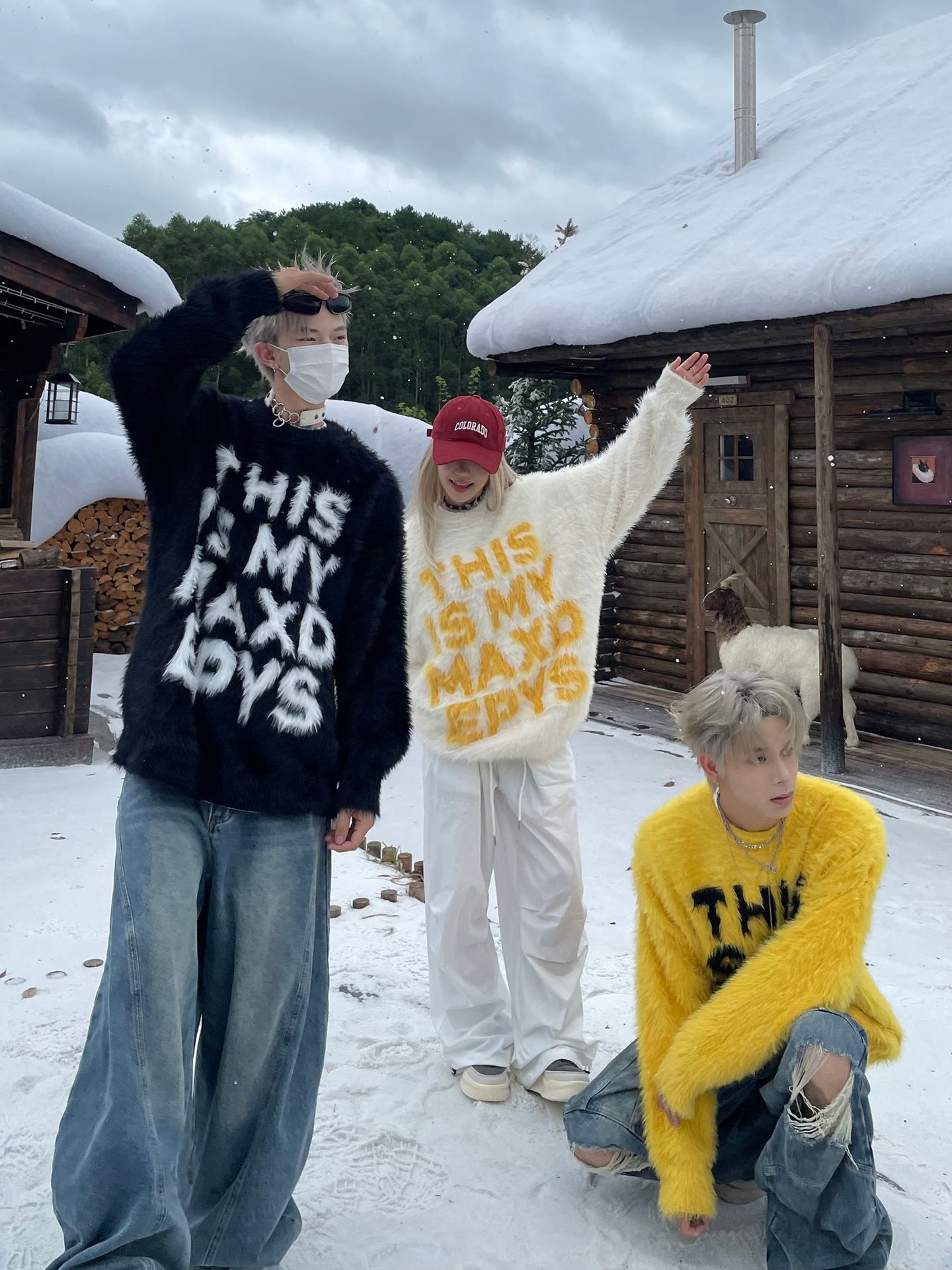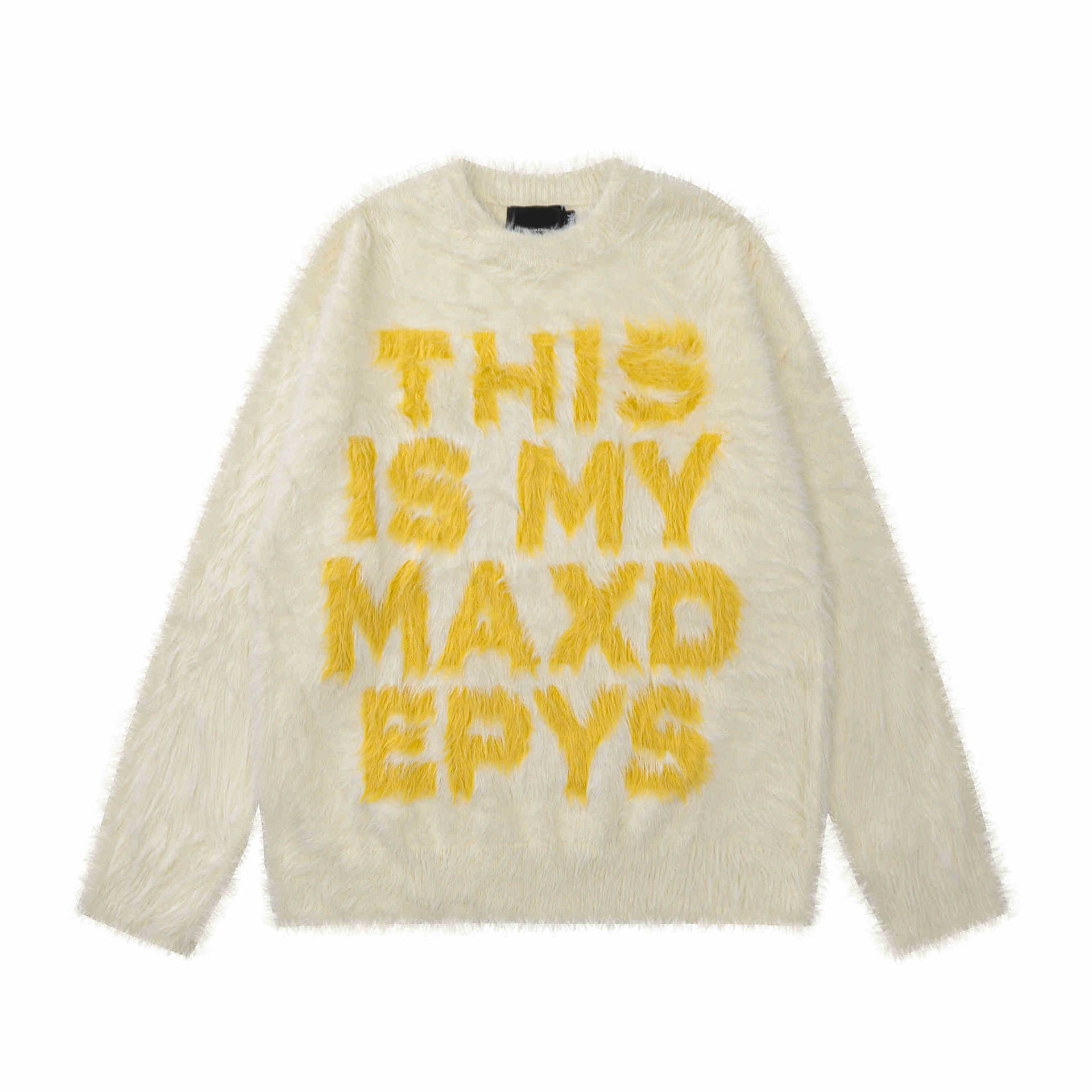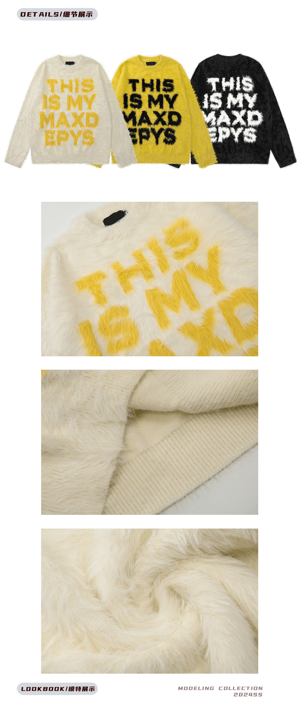 2024 미국 빈티지 편지 밍크 헤어 게으른 스타일 커플 스웨터 남성과 여성의 캐주얼 느슨한 니트 스웨터 재킷