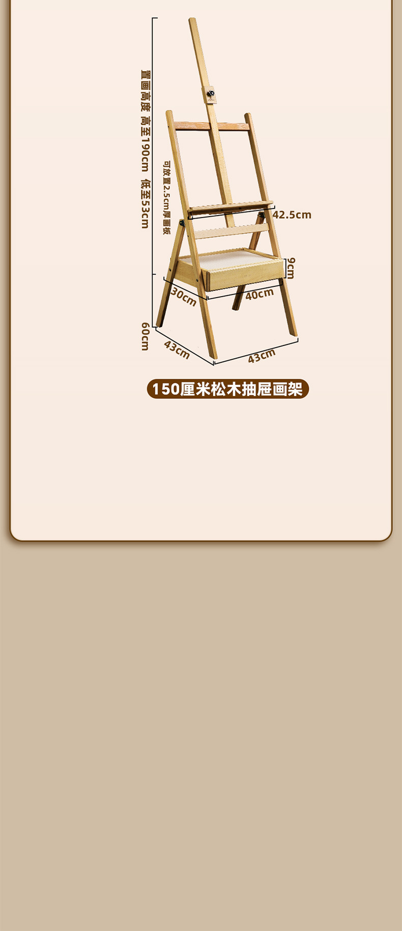 • 1.5m 서랍 이젤/소나무 스타일