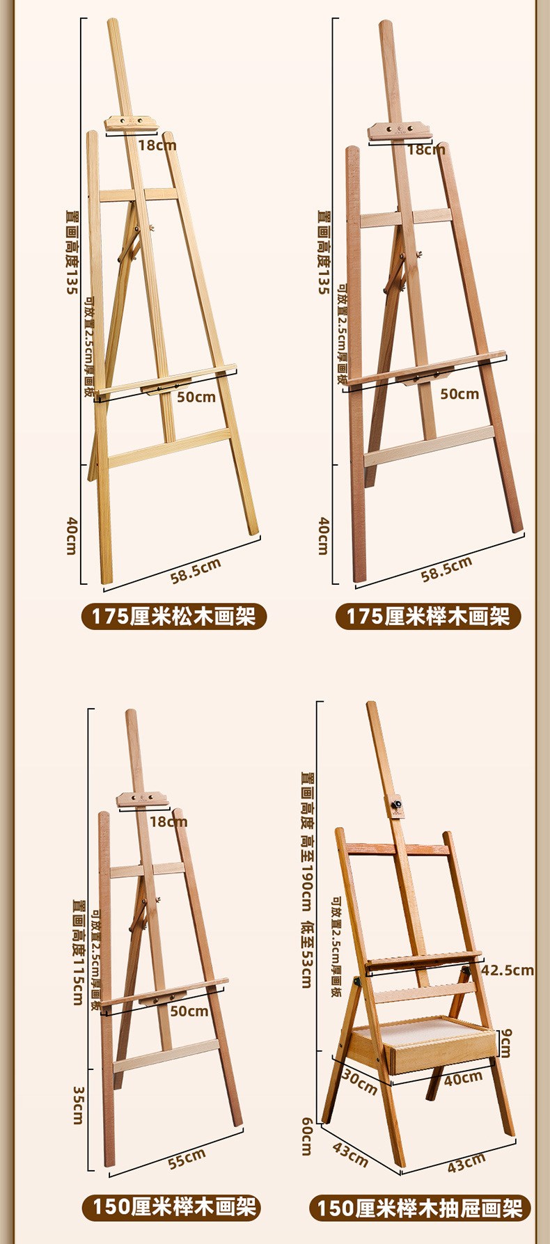 • 1.5m 서랍 이젤/너도밤나무 스타일