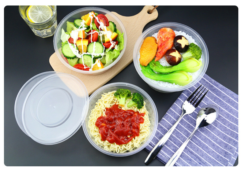 (전체 케이스 도매) 라운드 일회용 그릇 플라스틱 식사 상자 포장 테이크 아웃 투명 두꺼운 패스트 푸드 상자스토어 가기