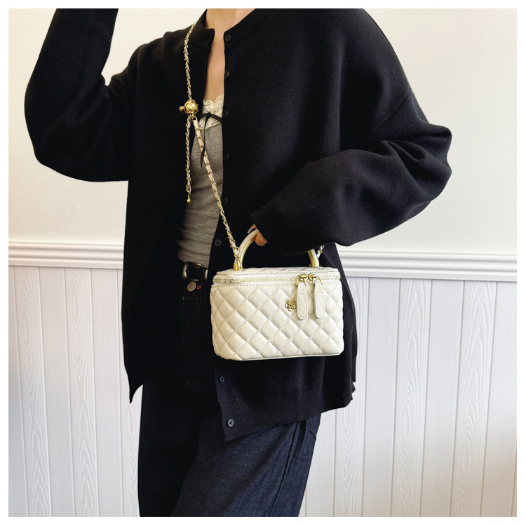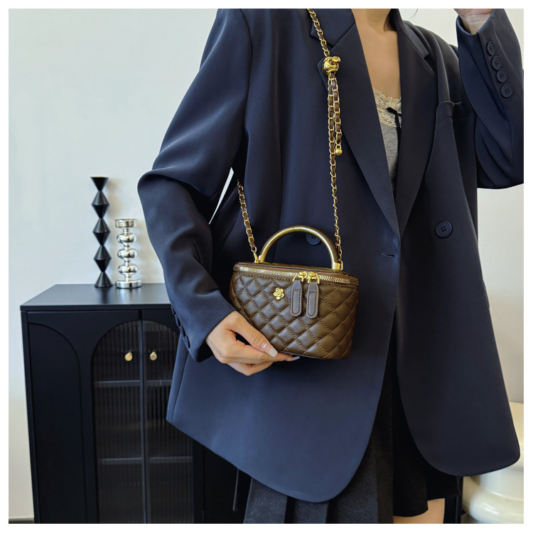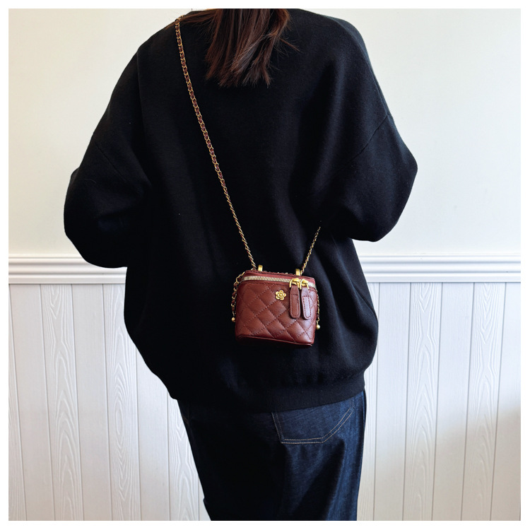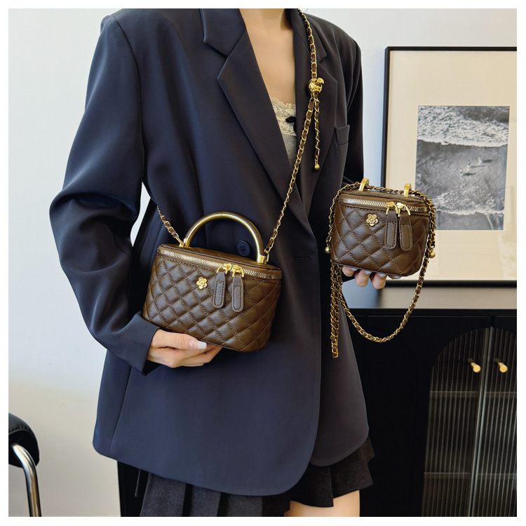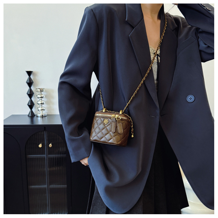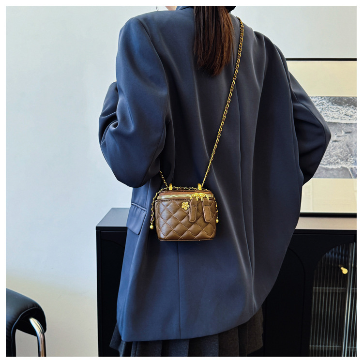 빈티지 손으로 들고 세련된 버킷 백 여성 2025 새로운 샤넬 스타일 다이아몬드 격자 무늬 체인 숄더 백 올 매치 크로스 바디 백