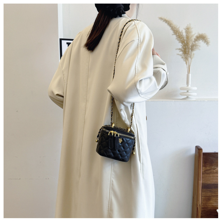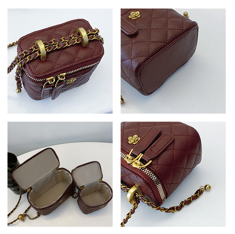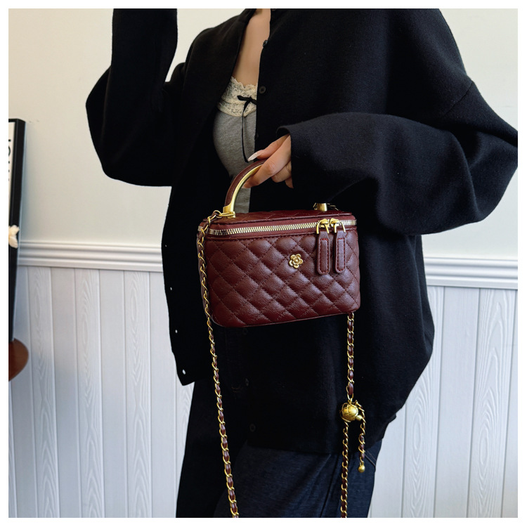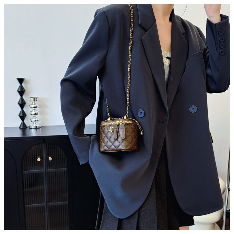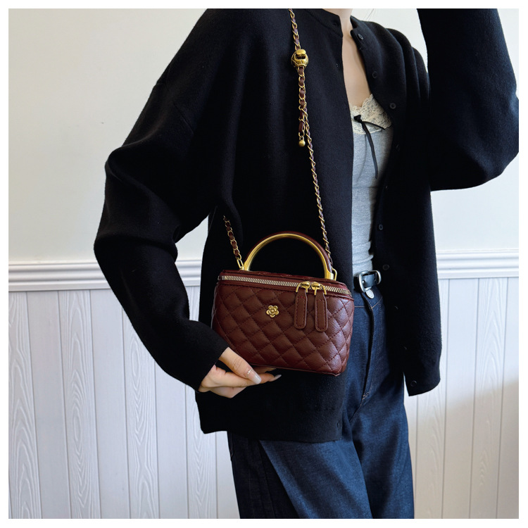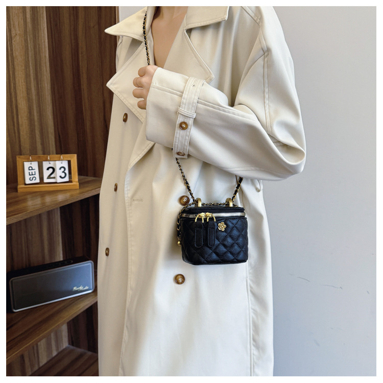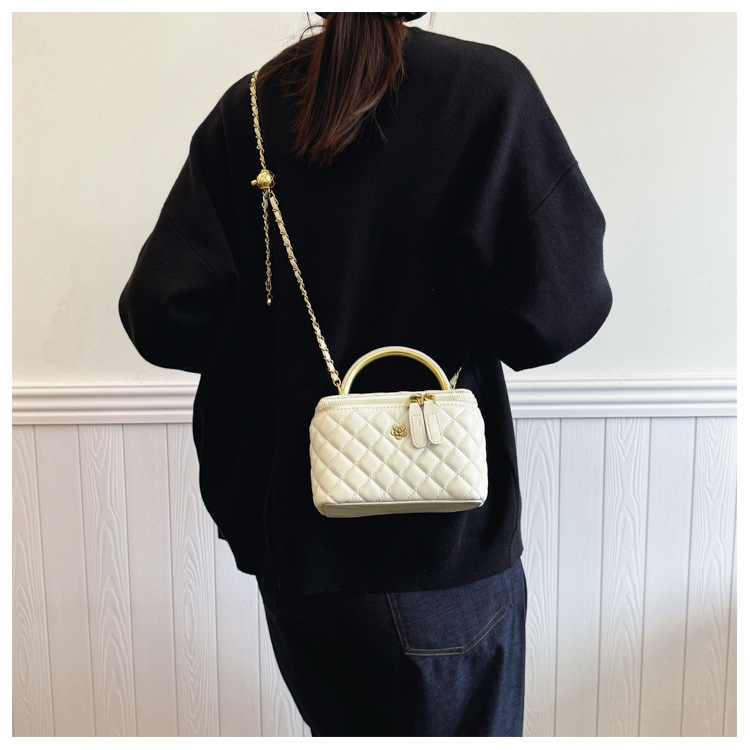 빈티지 손으로 들고 세련된 버킷 백 여성 2025 새로운 샤넬 스타일 다이아몬드 격자 무늬 체인 숄더 백 올 매치 크로스 바디 백