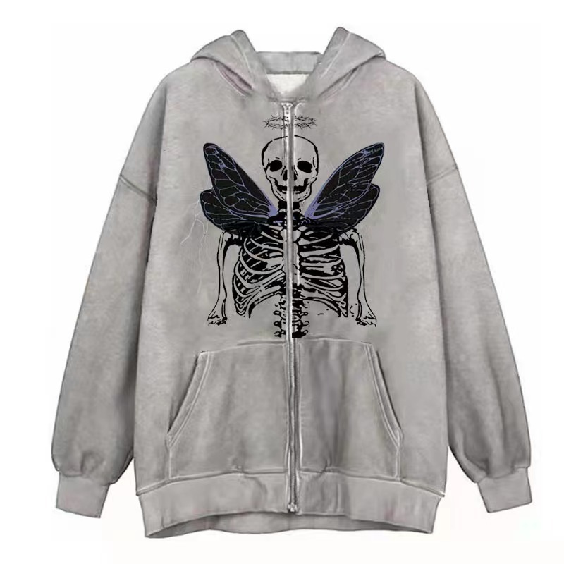유럽과 미국의 디아블로 스타일 스웨트 셔츠 여성용 후드 고딕 커플 나비 해골 하라주쿠 대형 지퍼 스웨트 셔츠