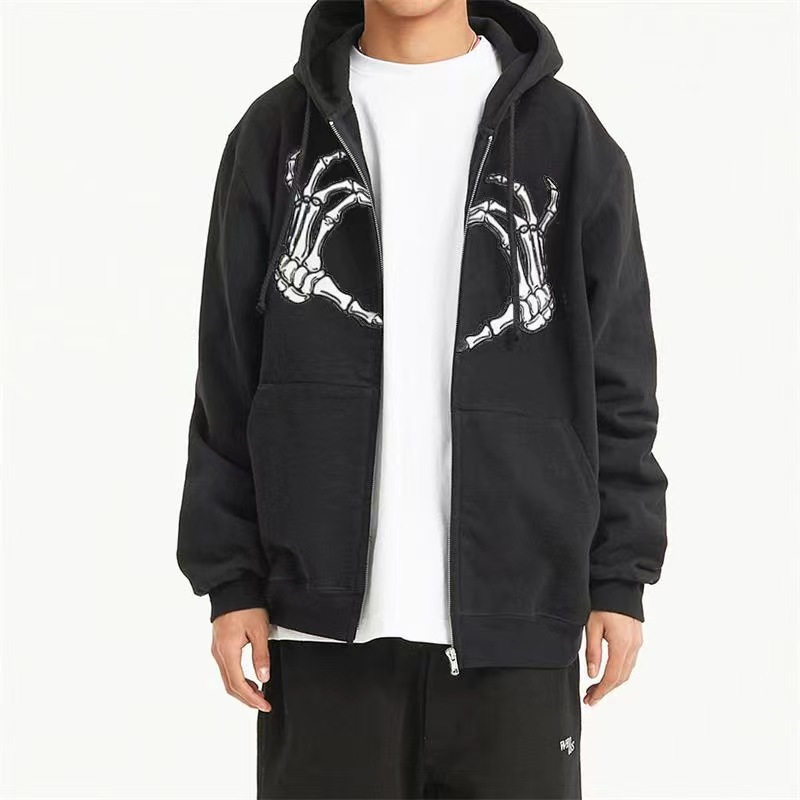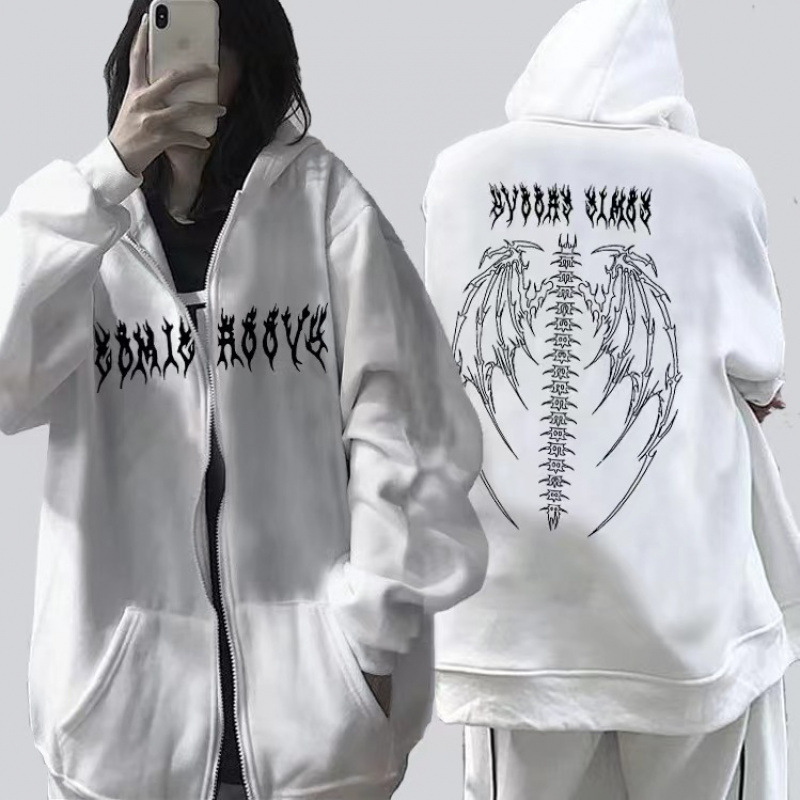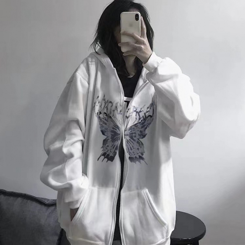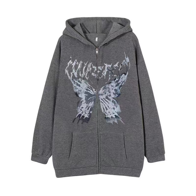 유럽과 미국의 디아블로 스타일 스웨트 셔츠 여성용 후드 고딕 커플 나비 해골 하라주쿠 대형 지퍼 스웨트 셔츠스토어 가기