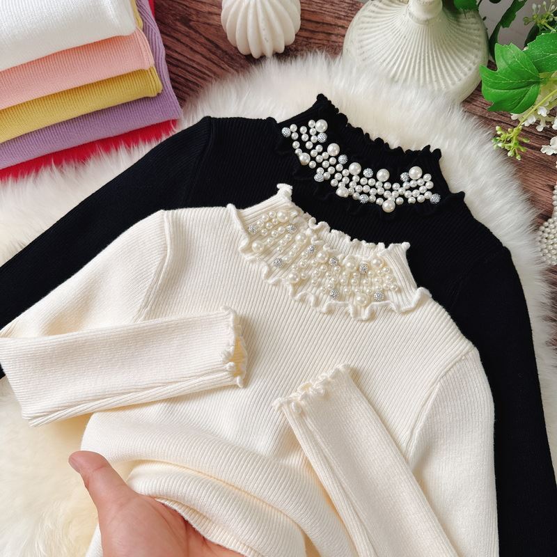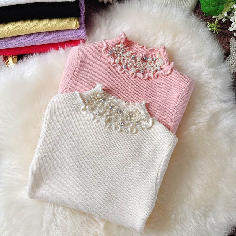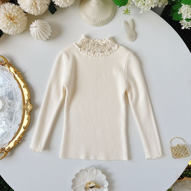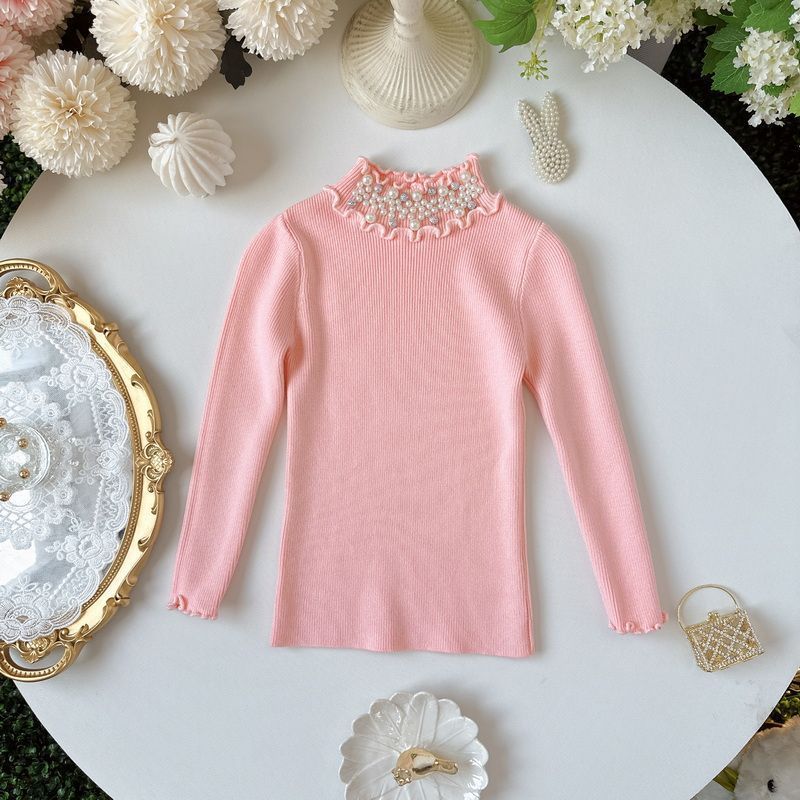 여성 캐주얼 니트 바닥 셔츠 하프 터틀넥 2025 가을, 겨울 새로운 스타일 소녀 스웨터 서양식 아동 스웨터 탑