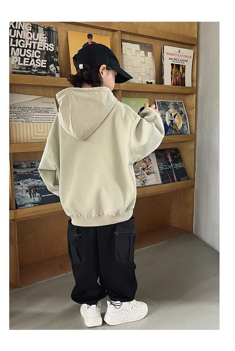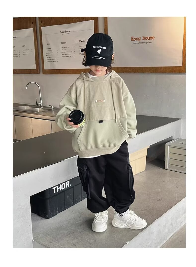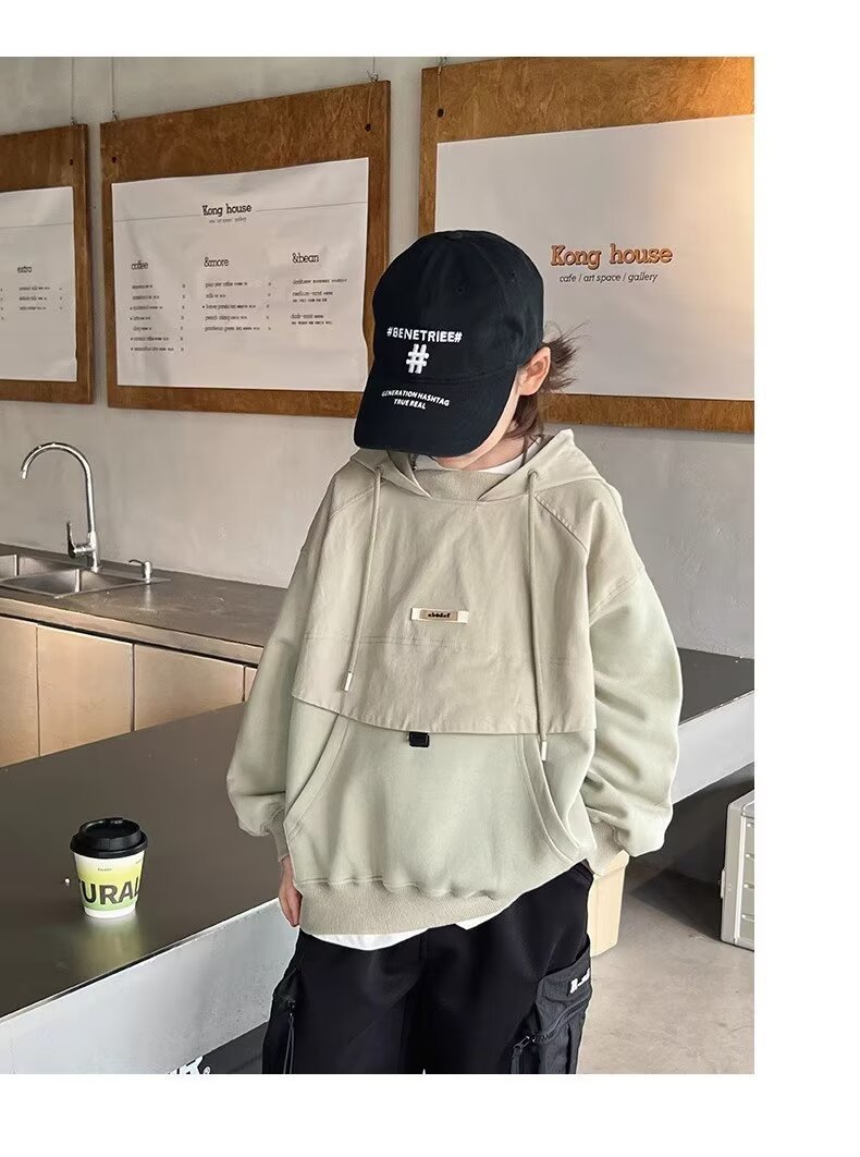 소년의 땀 2024 년 봄과 가을 새로운 어린이 가을 캐주얼 스포츠 후드 탑 가을 소년의 트렌디 브랜드스토어 가기